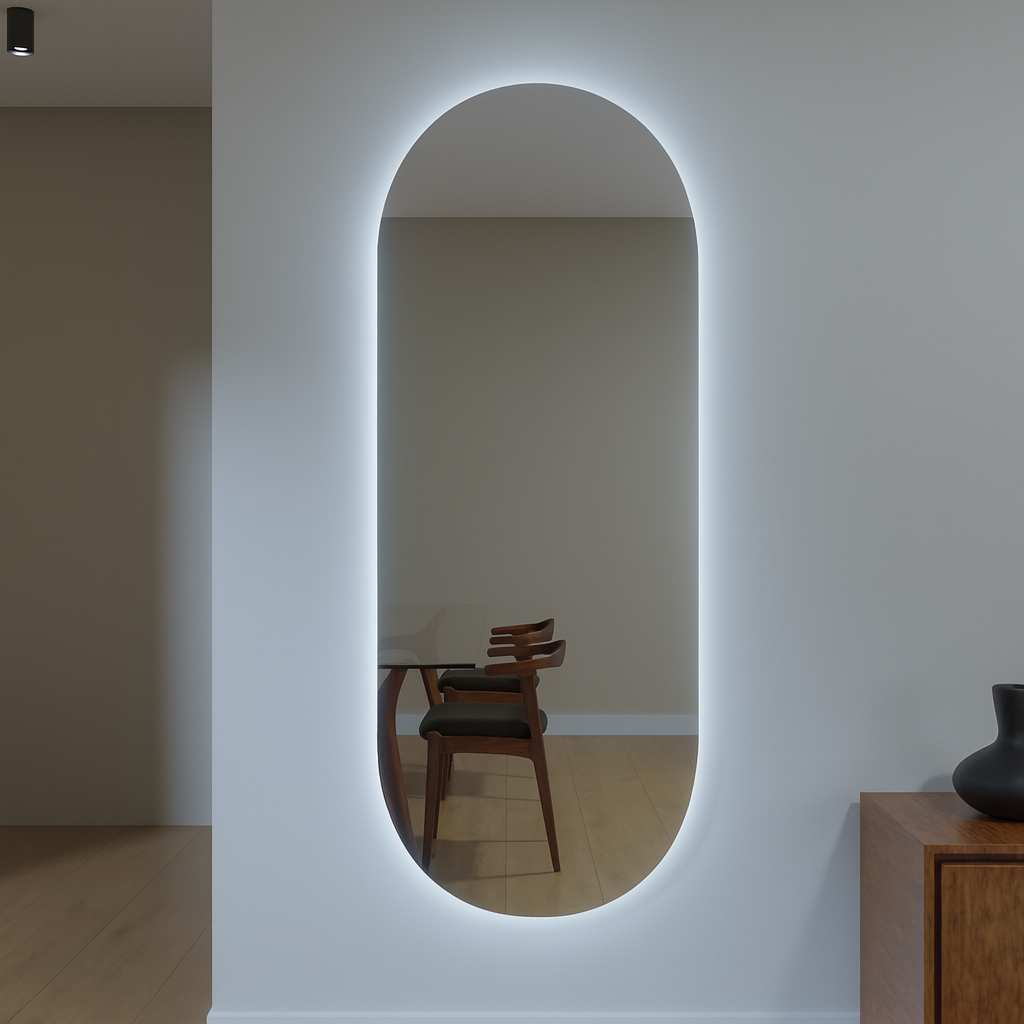 Espelho Grande Oval Led Quente 3000K Neutro 4000k Frio 6000k Sem Moldura Corpo Inteiro Banheiro Hall Bivolt