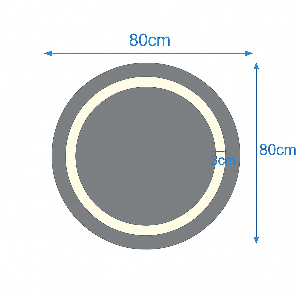 Espelho Redondo 80cm x 80cm Led Jateado Touch Grande Decorativo Bivolt Moderno Sala Quarto Banheiro Hall 3 TONS DE LED