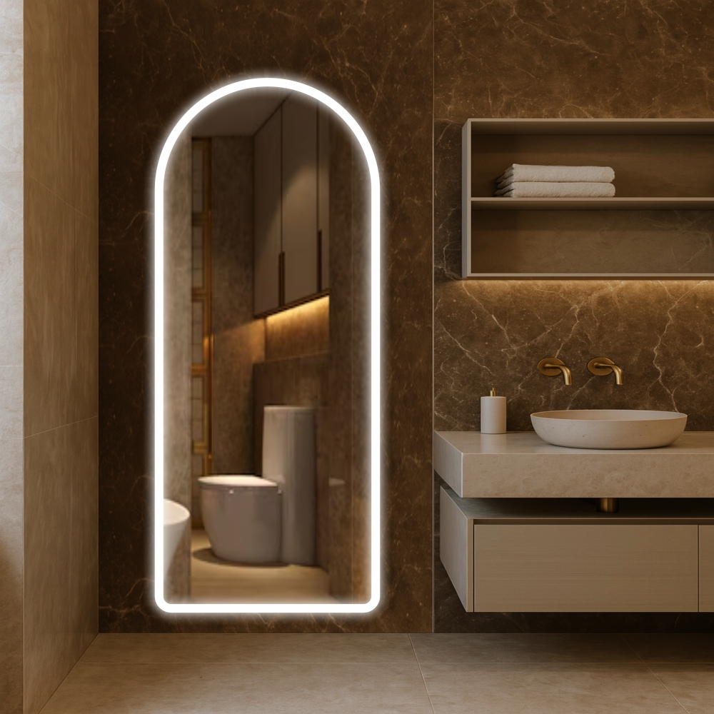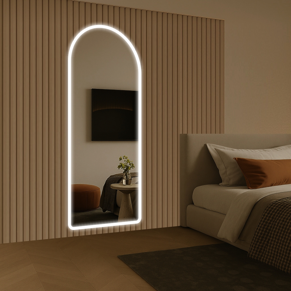 Espelho Base Reta E13 LED Jateado Borda Infinita Bivolt Corpo Inteiro Banheiro Quarto Closet Sala 3000k 6000k 4000k