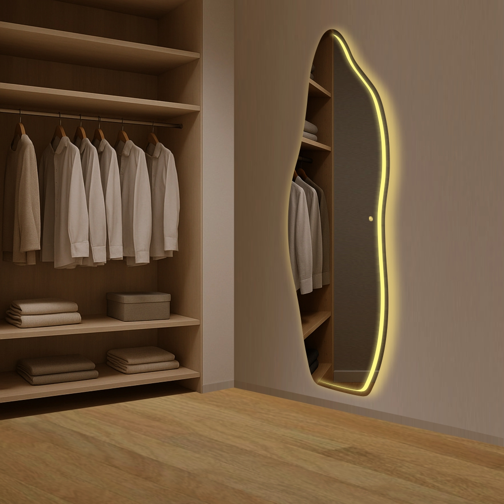 Espelho Corpo Inteiro Led Frontal Jateado Polido Grande Quarto Luxo Bivolt Touch Tamanhos Variados