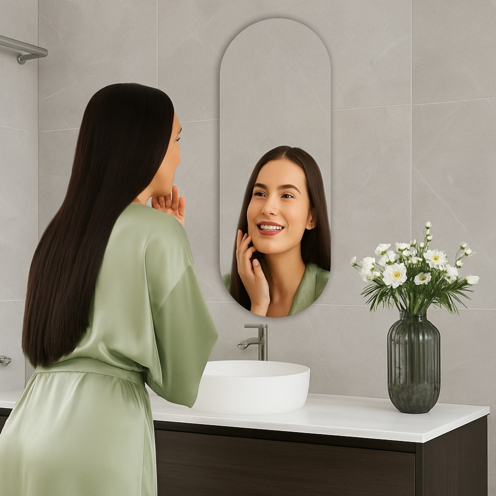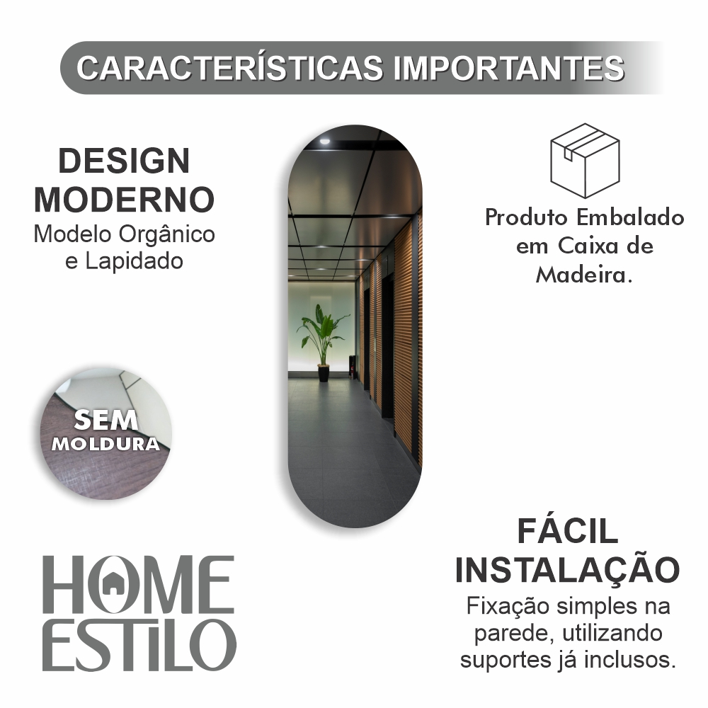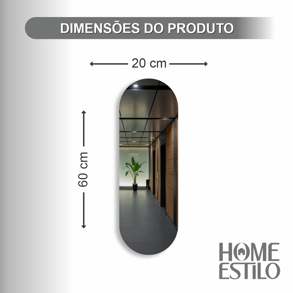 Espelho Oval 60cm x 20cm Decorativo Sala Quarto Loja Hall Banheiro Lavabo Luxo
