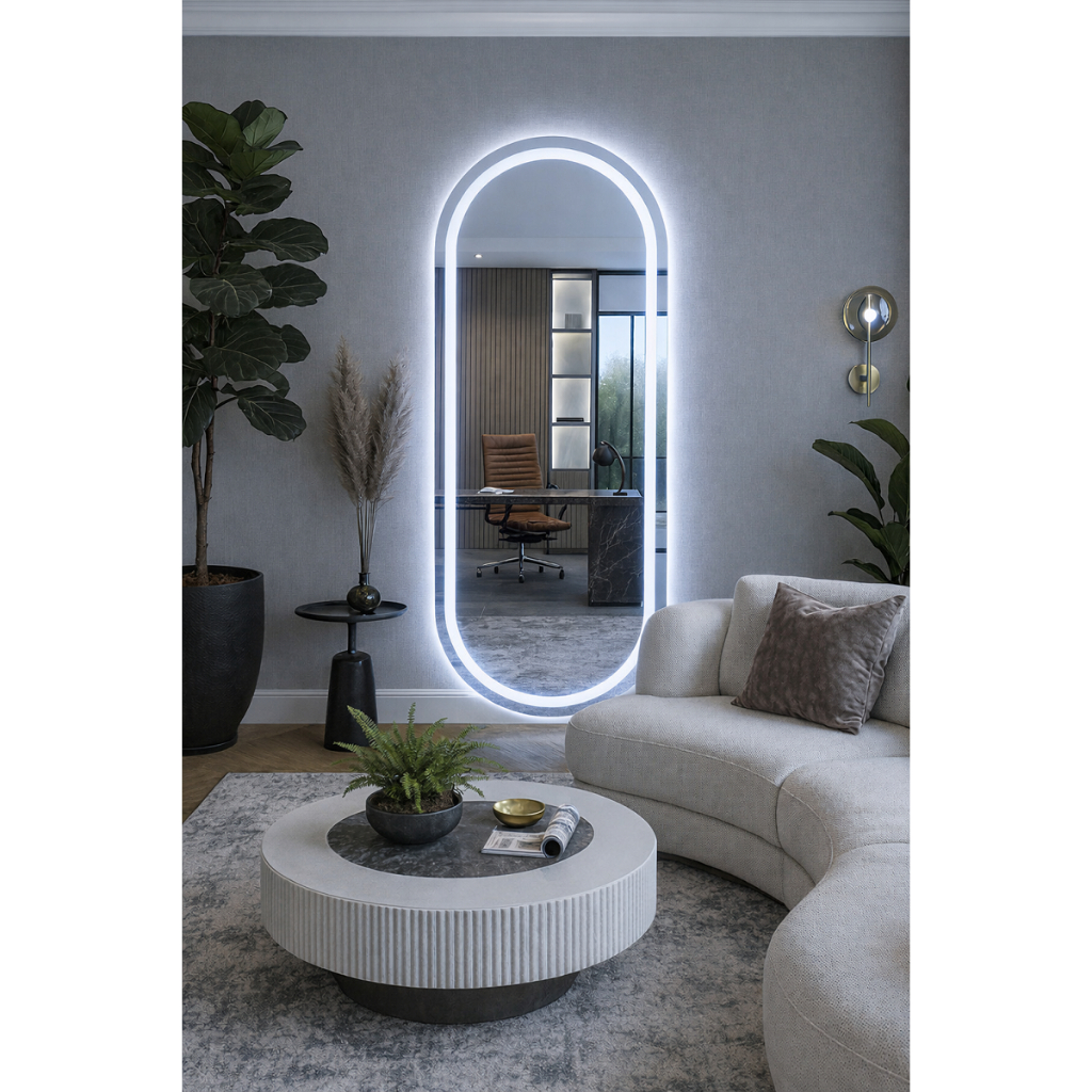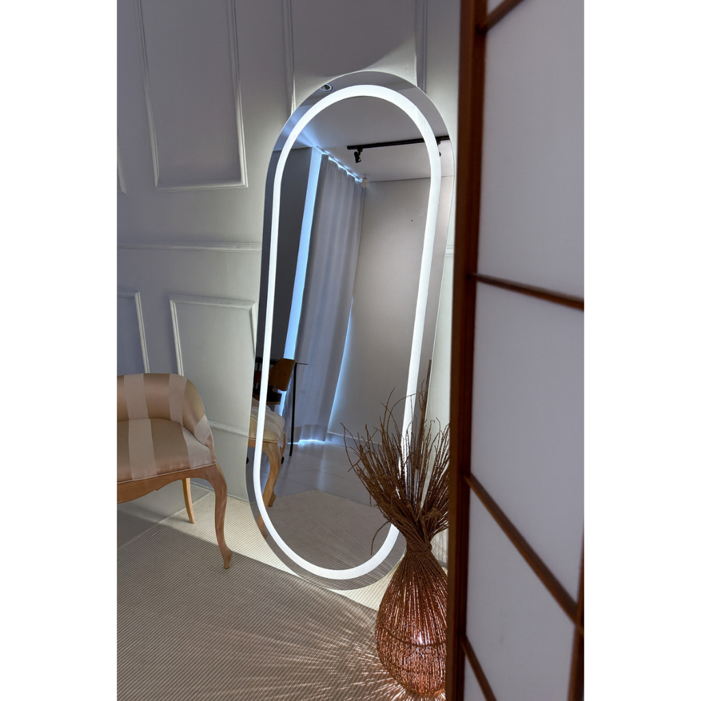 Espelho Oval EL07 Corpo Inteiro 170cm x 70cm Polido LED Jateado Luz Branca e Luz Amarela Sala Quarto Banheiro