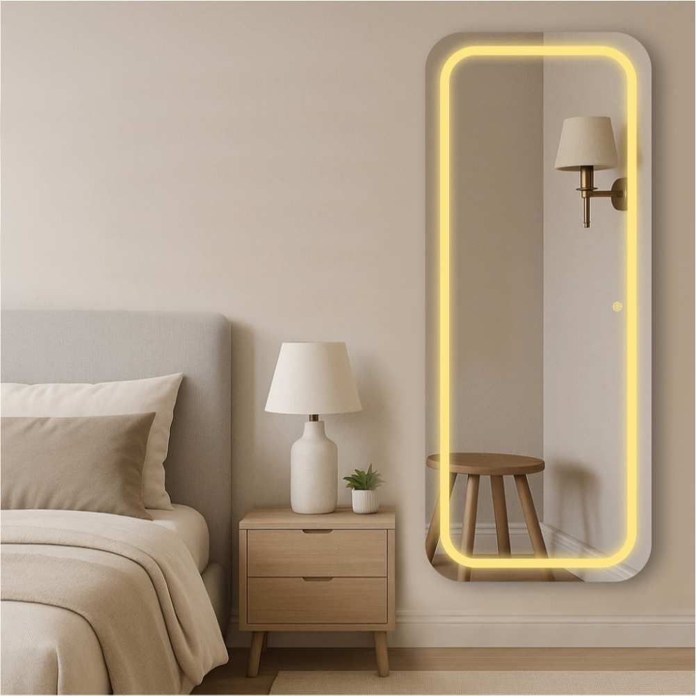 Espelho Retangular Led Jateado Bivolt Touch Corpo Inteiro Grande Casa Quarto Salão Loja Hall Lançamento Promoção