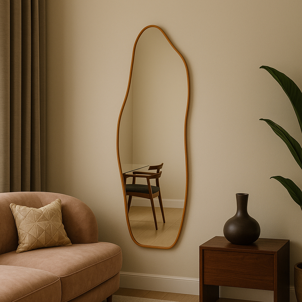 Espelhos Decorativos de Luxo em Couro Orgânico Quarto Corpo Inteiro Design Premium Sala Banheiro Polido Hall e Salão