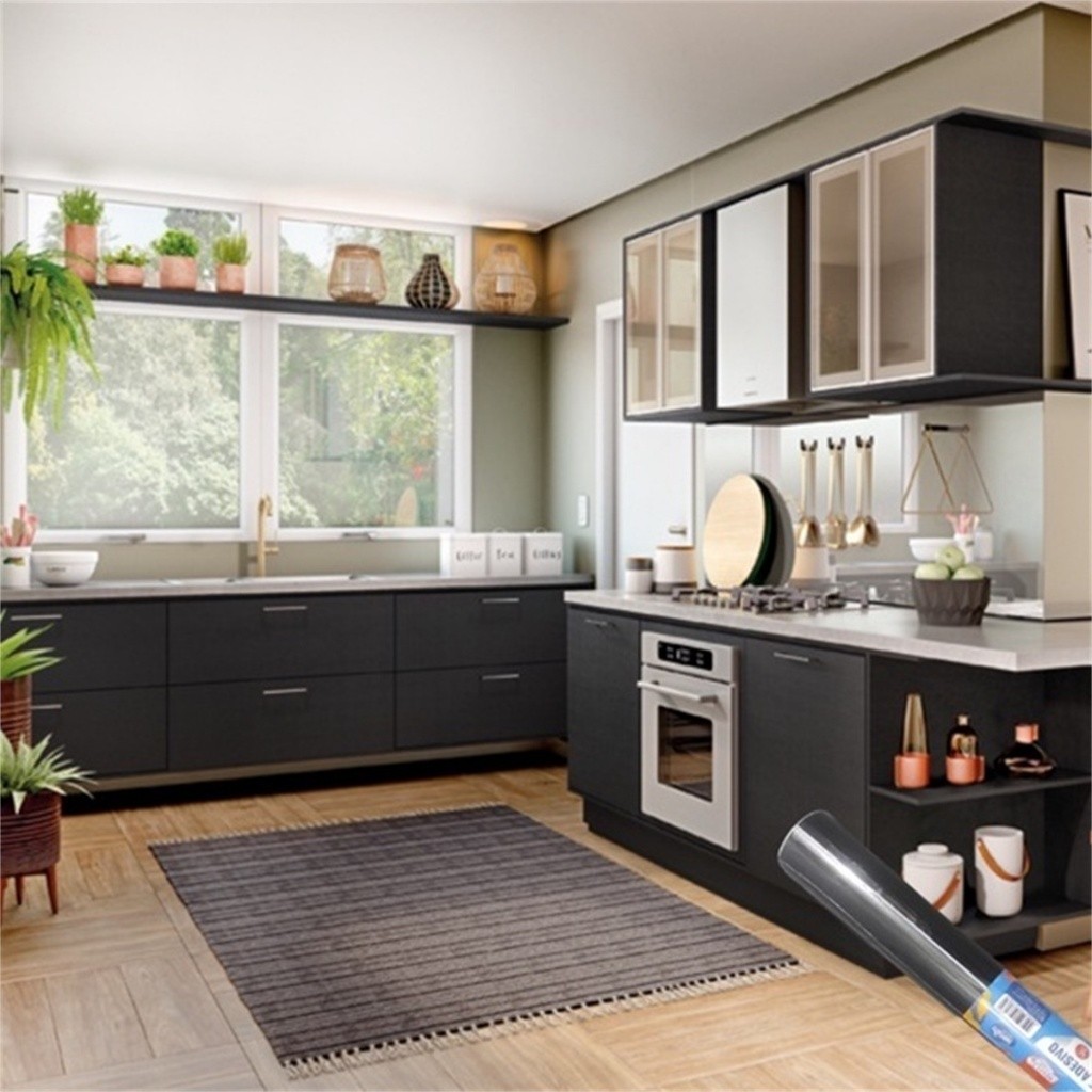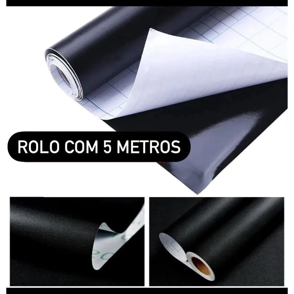 Papel De Parede Adesivo Preto Fosco Para Parede Móveis Geladeiras Eletrodoméstico 5M X 0,45