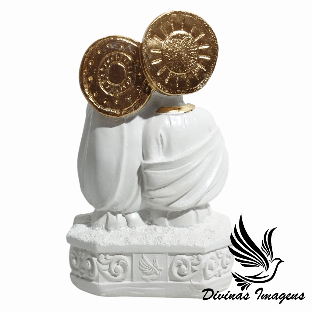Imagem Sagrada Família Busto 15cm Branco Perolado com Detalhes Dourados Lembrança Religiosa