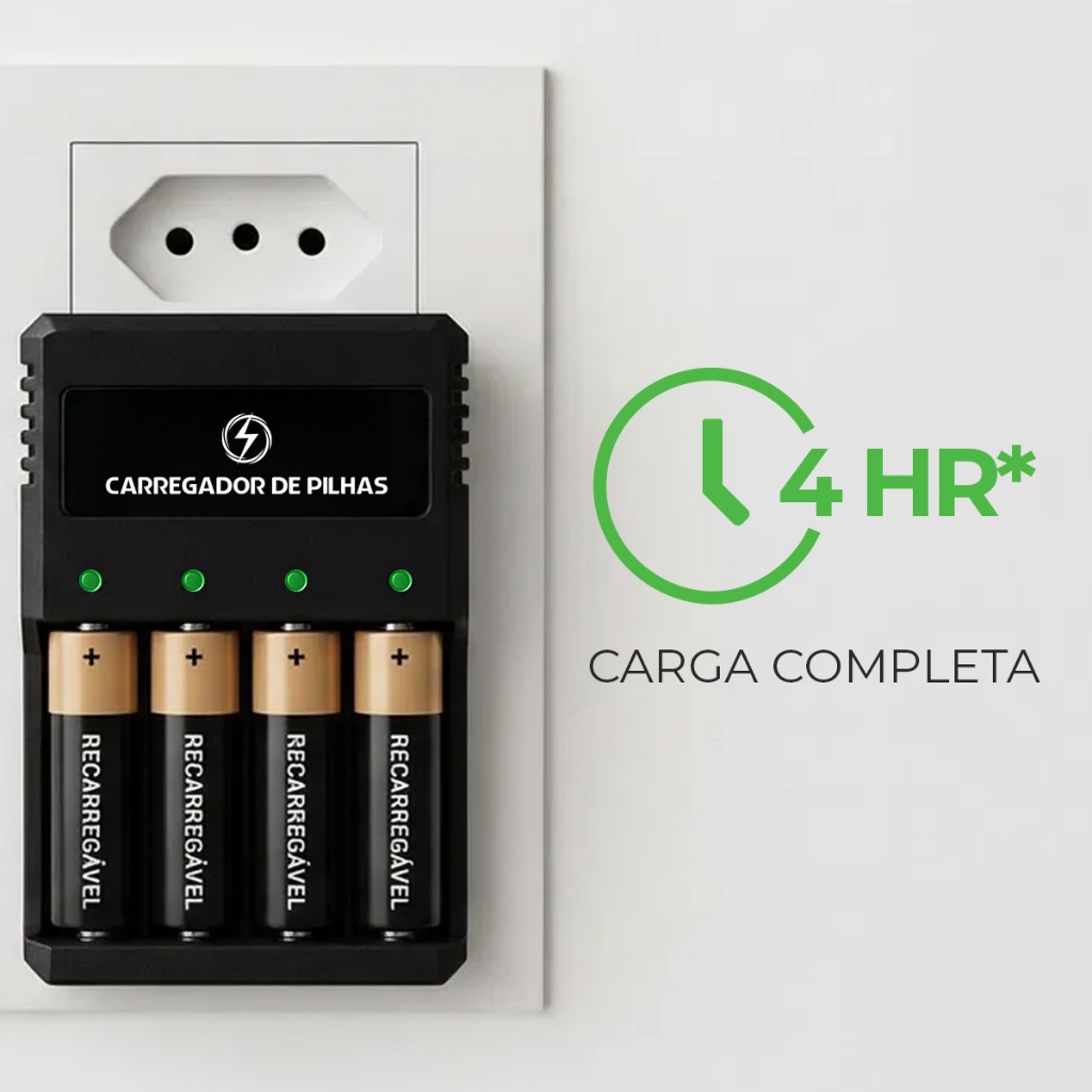 Carregador de Pilhas Recarregáveis Kit + 8 Baterias opcionais AA/AAA/Bateria 9V