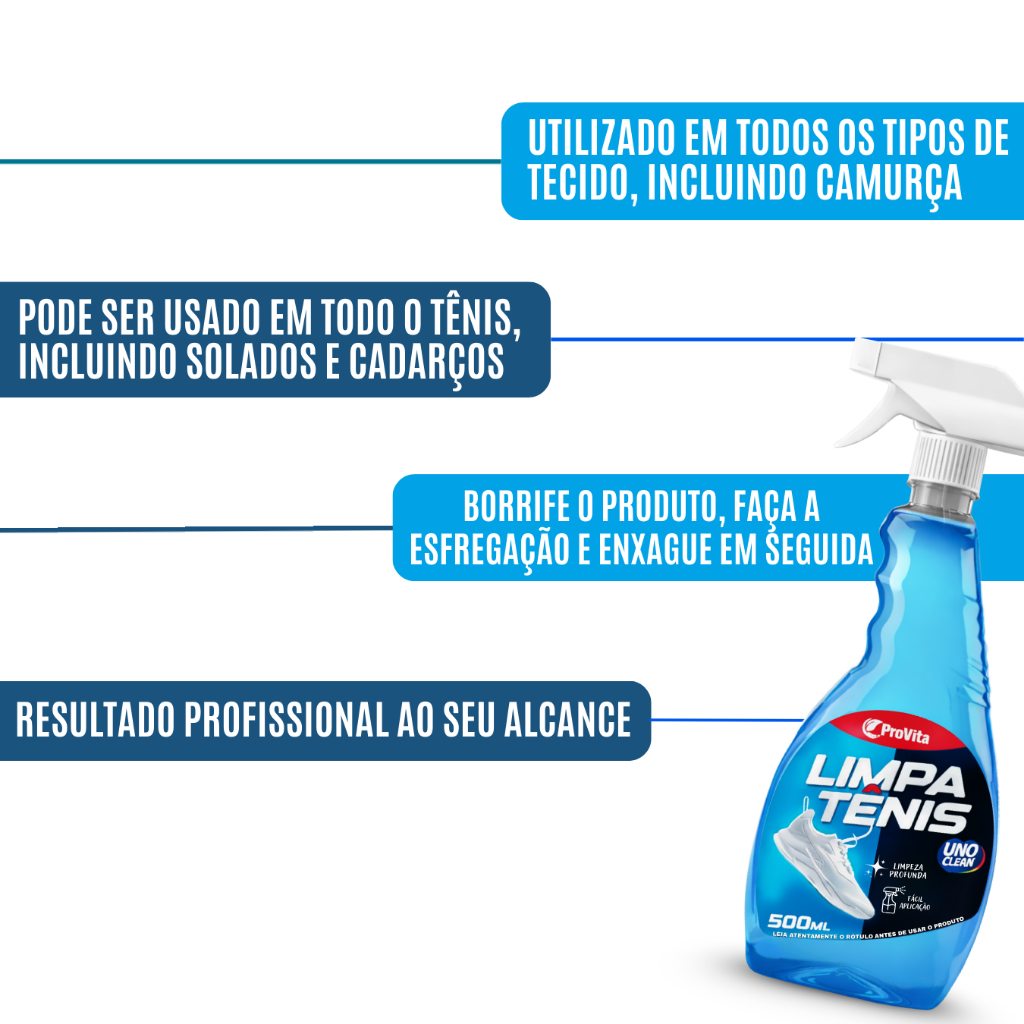 Limpa Tênis À Seco Spray Premium Provita 500ml Remove Sujeira Pesada Calçado Solado Branco Colorido