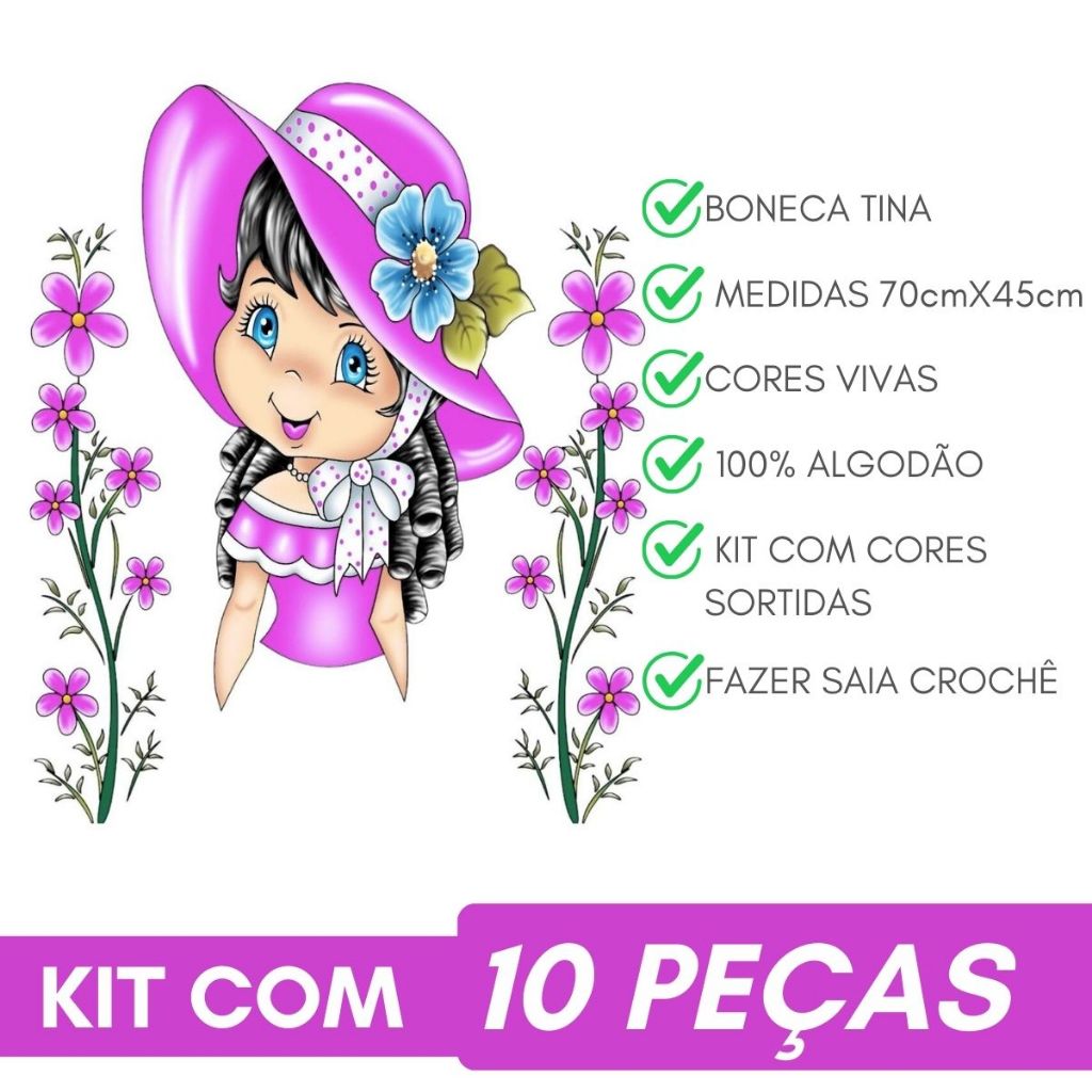 Kit 10 Pano de Prato Boneca Artesã Tina 100% Algodão Premium Estampa Linda 70X45 Cozinha