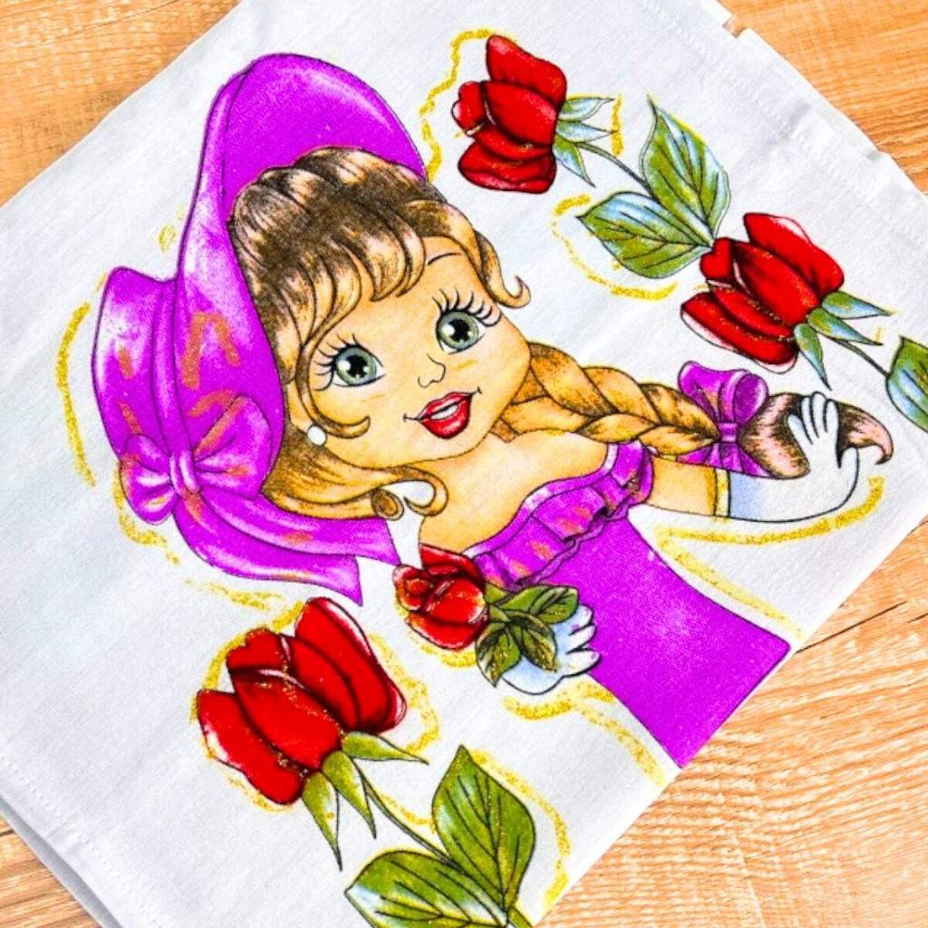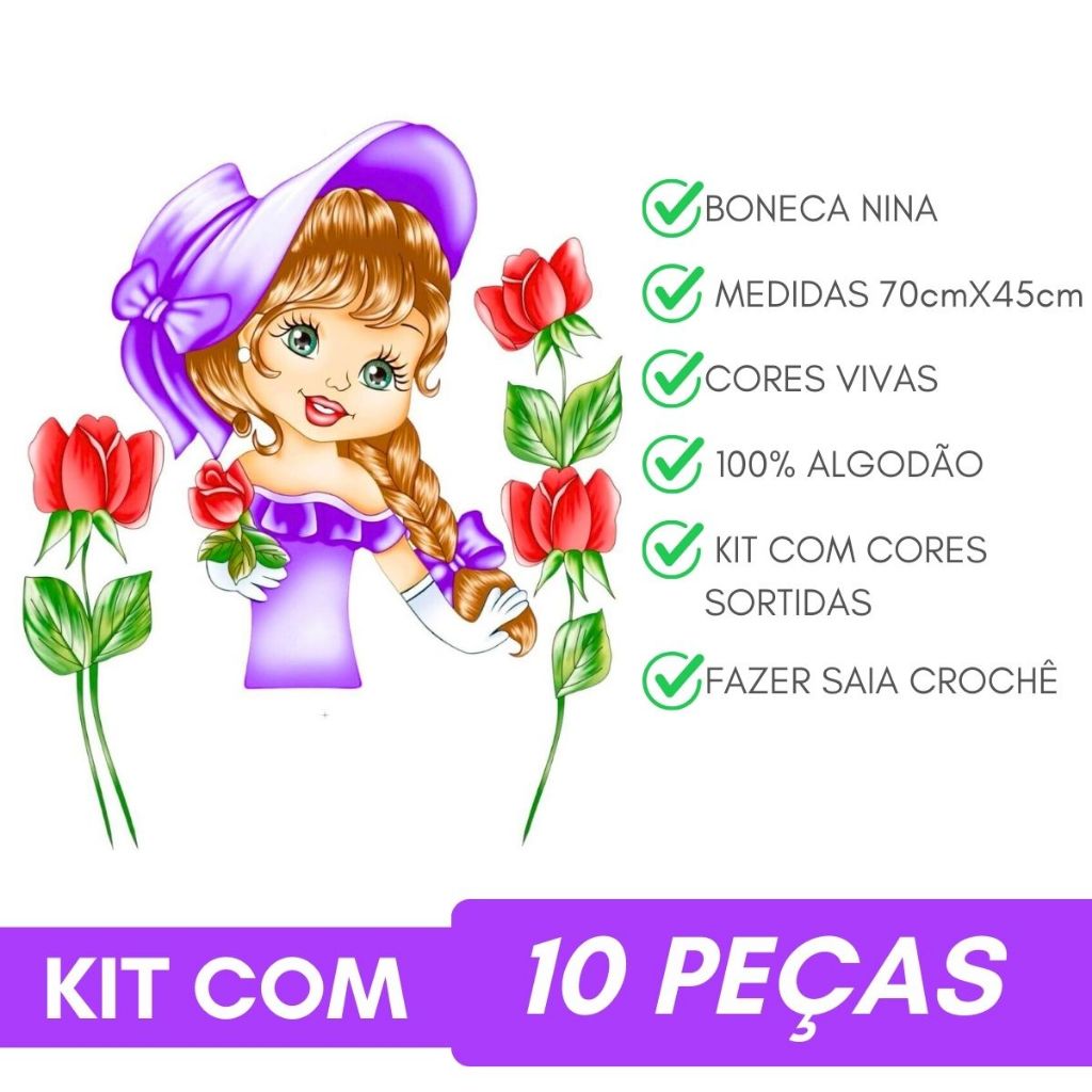 Kit 10 Pano de Prato Boneca Artesã Nina 100% Algodão Premium Estampa Linda 70X45 Cozinha