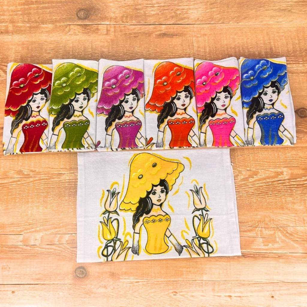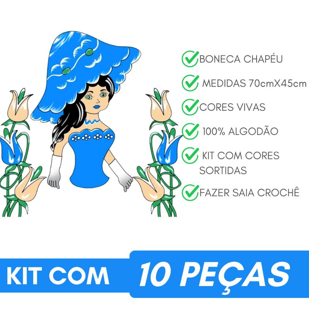 Kit 10 Pano de Prato Boneca Artesã Chapéu 100% Algodão Premium Estampa Linda 70x45 Cozinha
