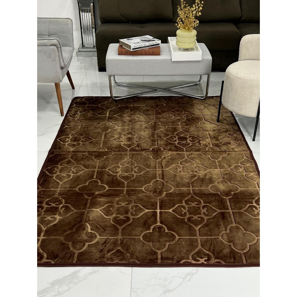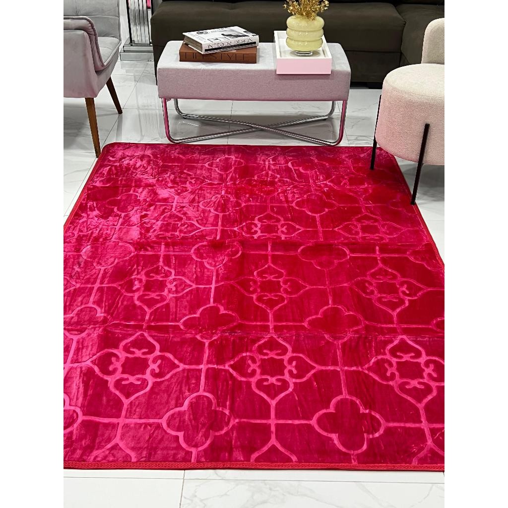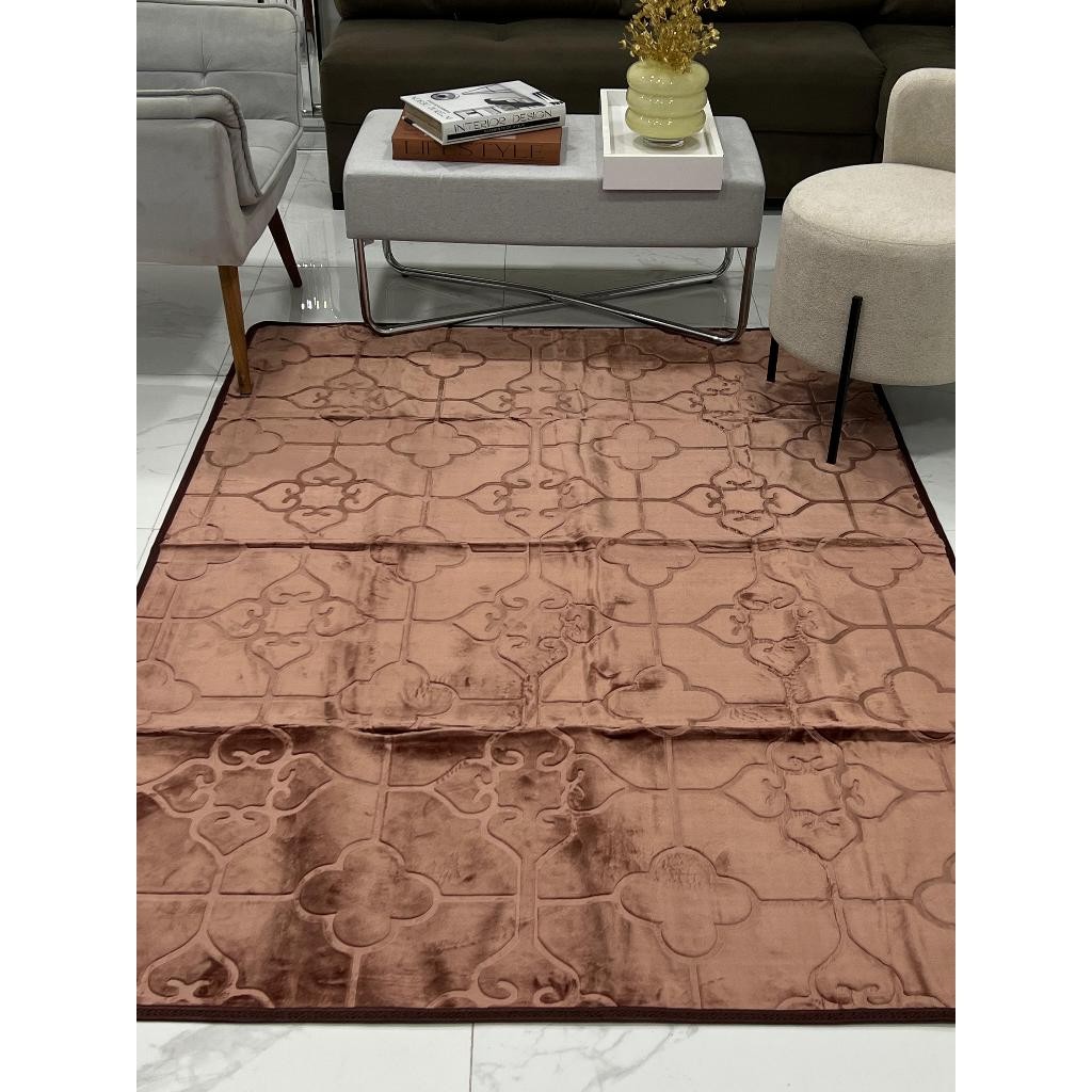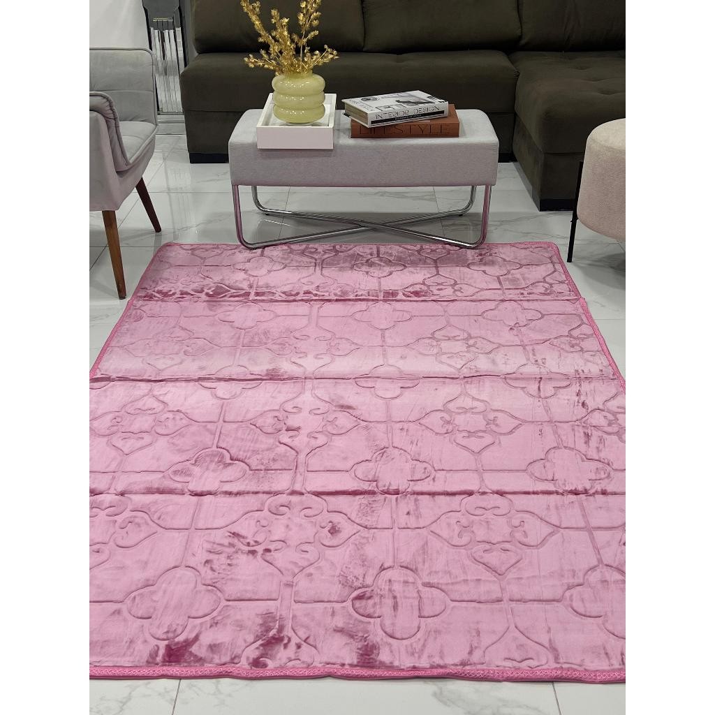 Tapete Sala Quarto Floral 1,45x1,95 Mt Antiderrapante Ins Flannel Grande Liso