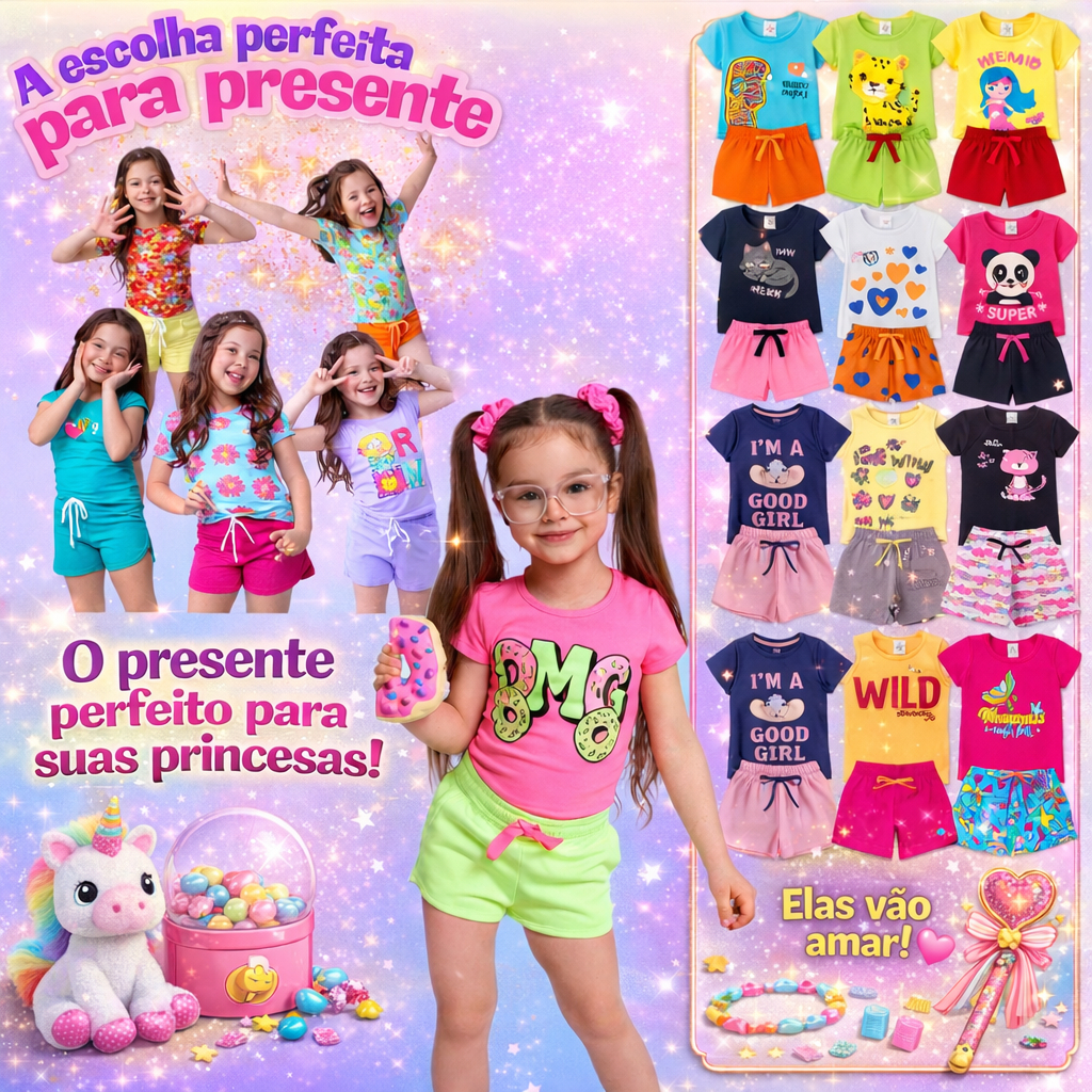 Kit 6/8/12 Peças Conjunto Infantil Menina Verão Roupa Confortável Bebê Moda Criança Estampada
