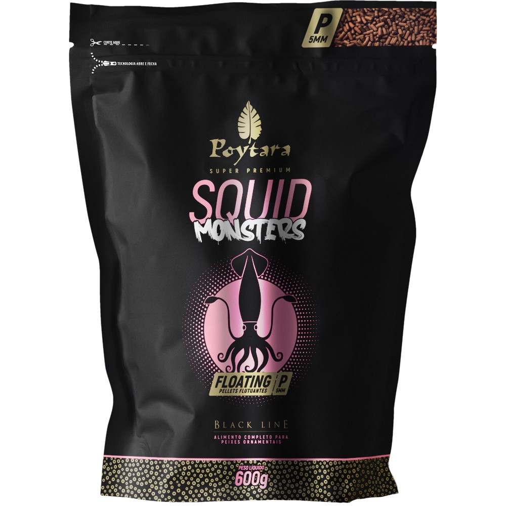 Ração Para Peixes Squid Monsters Floating P Black Line 600g - Poytara