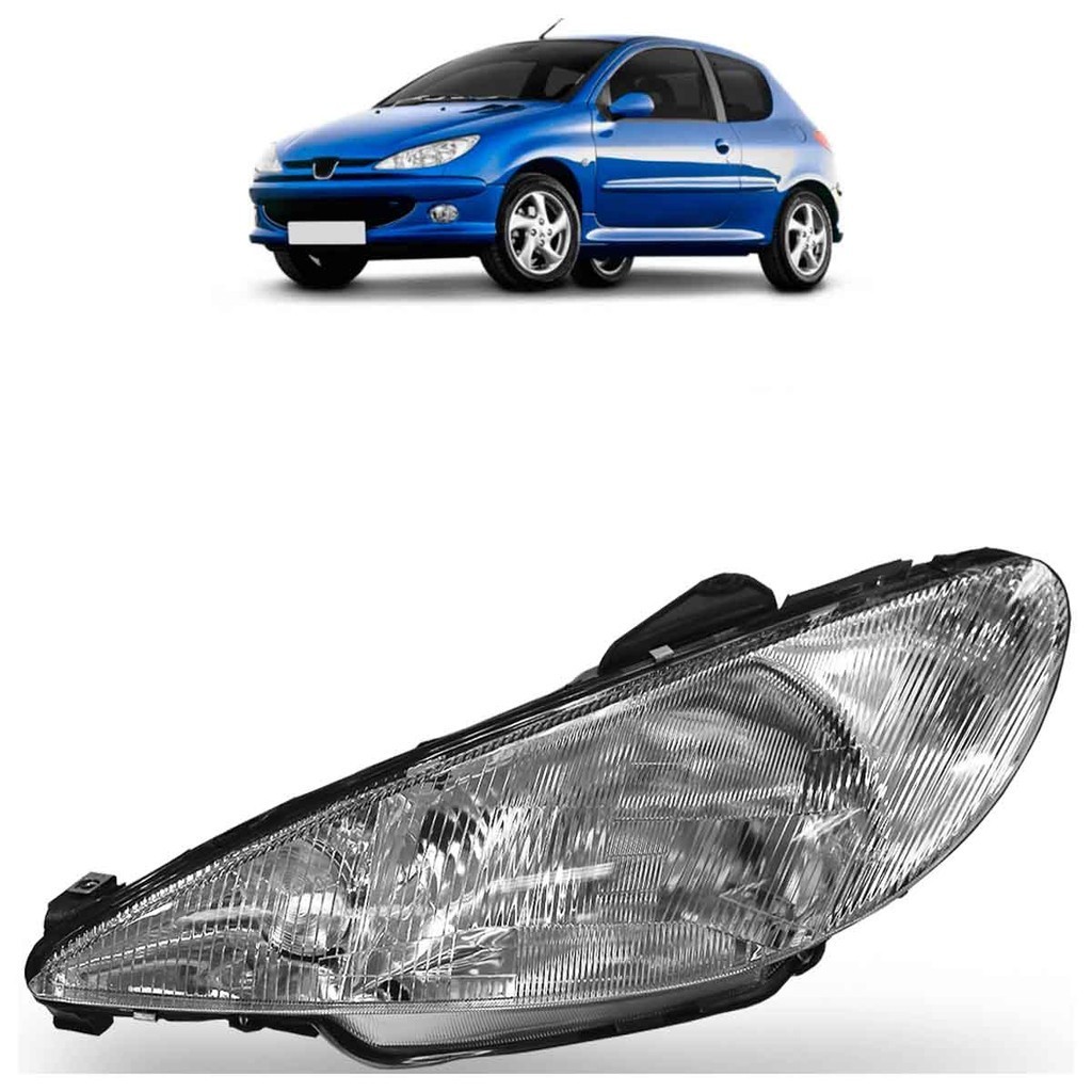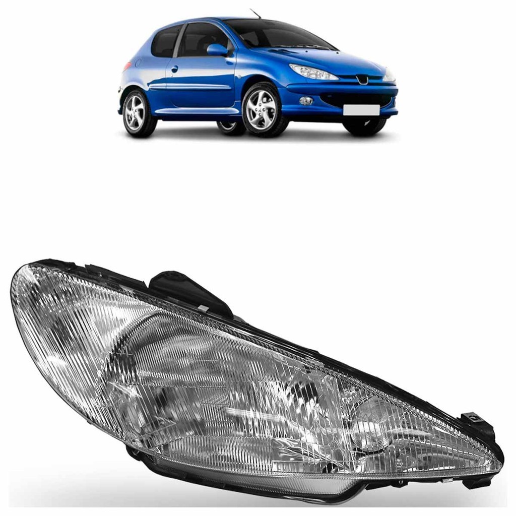 Farol Dianteiro 206 1999 2000 2001 2002 2003 Máscara Cromada Foco Simples Lente Lisa Acrilico