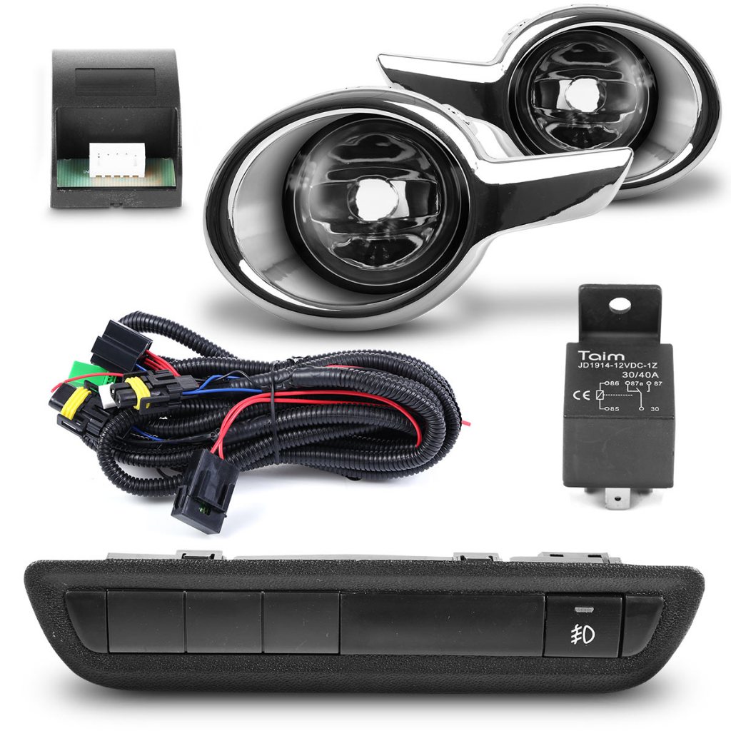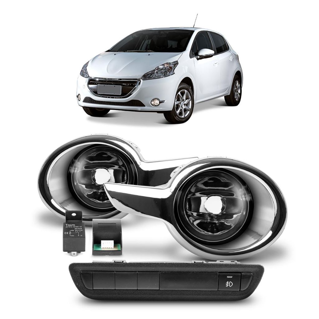 Kit Farol Milha Auxiliar 208 2013 2014 2015 2016 com Aro Cromado Botão Modelo Original