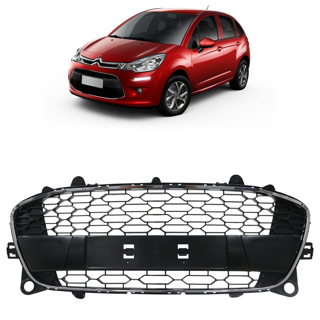 Grade Central Citroën C3 2013 2014 2015 2016 Preto Com Friso Cromado Liso