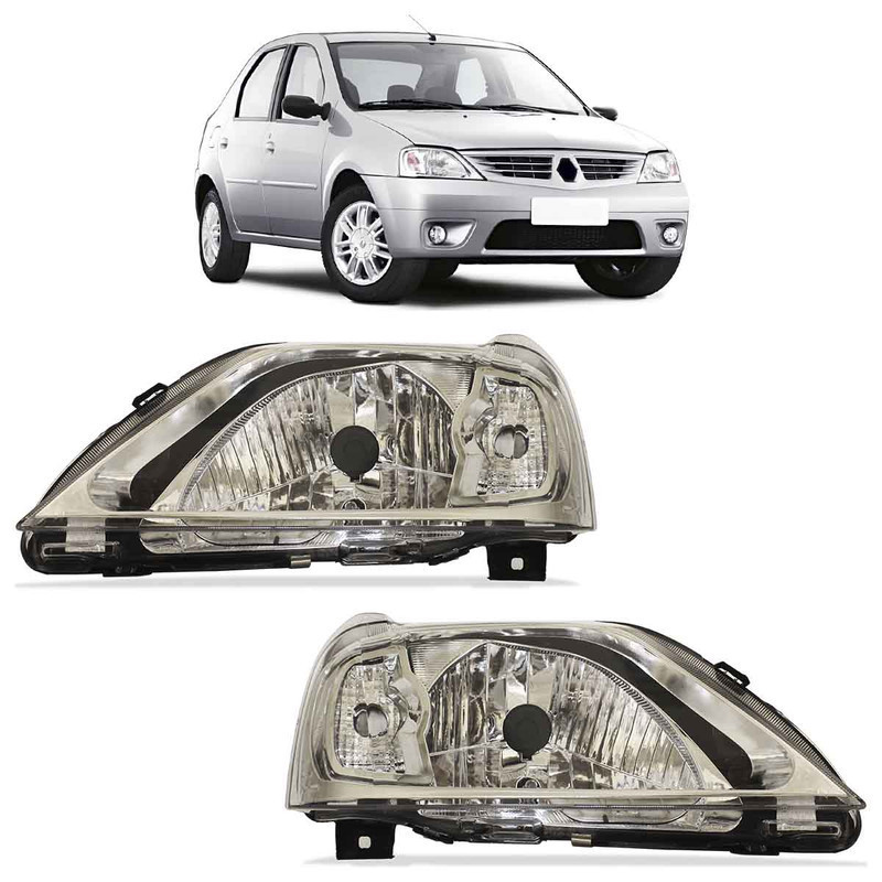Par Farol Dianteiro Logan 2007 2008 2009 2010 Máscara Cromada
