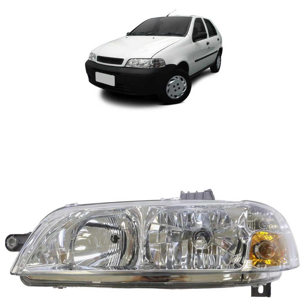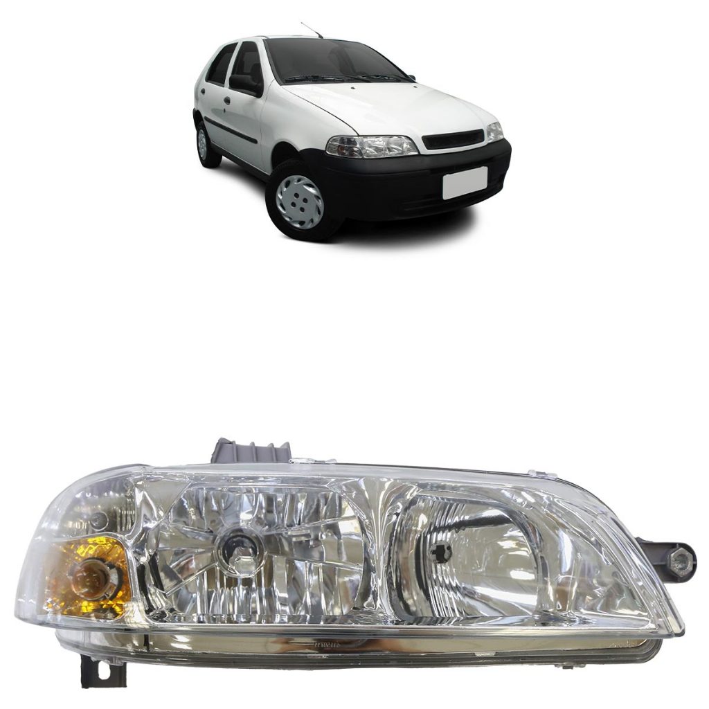 Farol Dianteiro Palio G2 2001 2002 2003 2004 A 2006 Máscara Cromada Foco Duplo Lente Lisa Acrílico