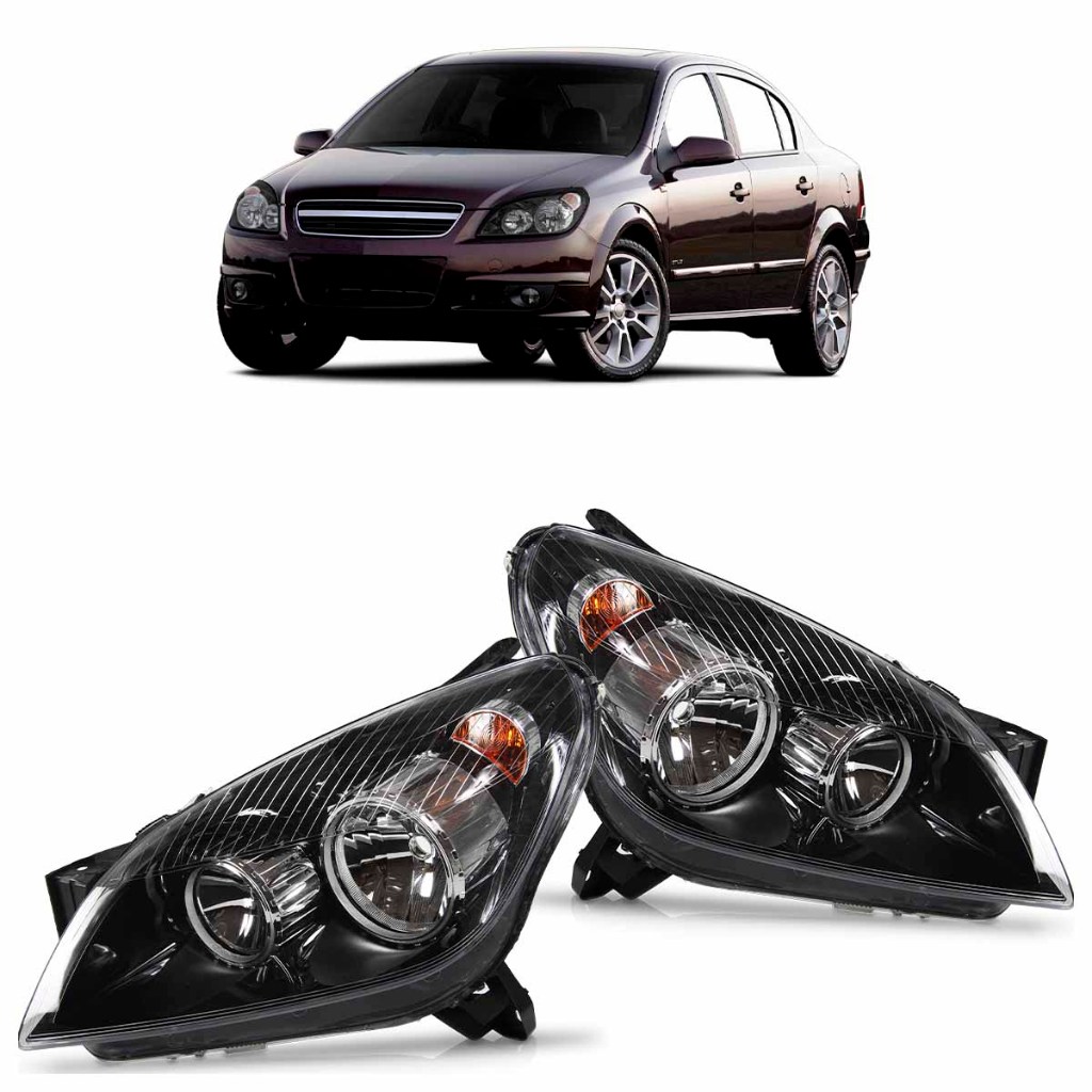 Farol Vectra 2006 2007 2008 Máscara Negra Canhão Cromado Pisca Âmbar Foco Duplo