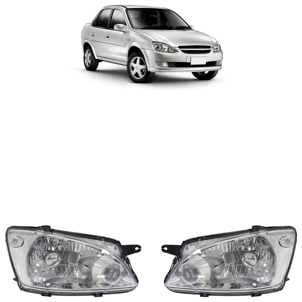 Par Farol Dianteiro Corsa Classic 2011 2012 2013 2014 A 2016 Máscara Cromada Foco Simples Lente Lisa