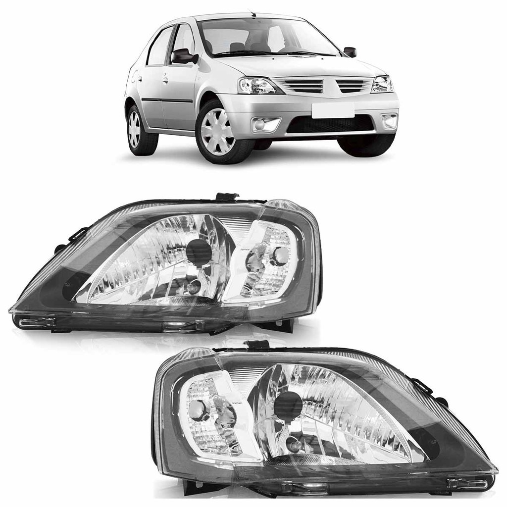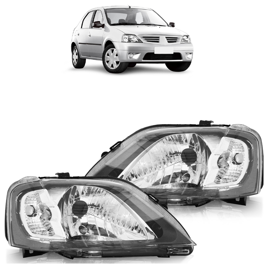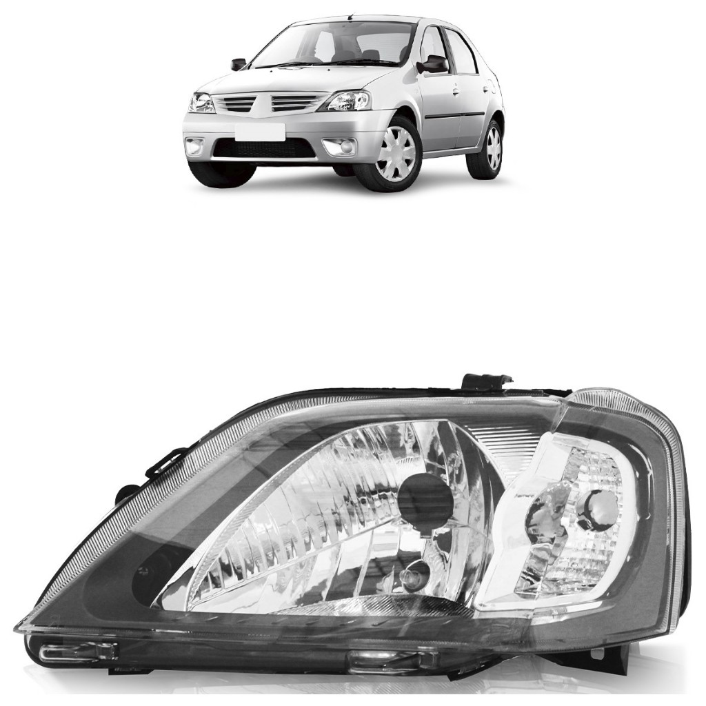 Farol Dianteira Logan 2007 2008 2009 2010 Máscara Cinza Foco Simples Lente Lisa Acrilico