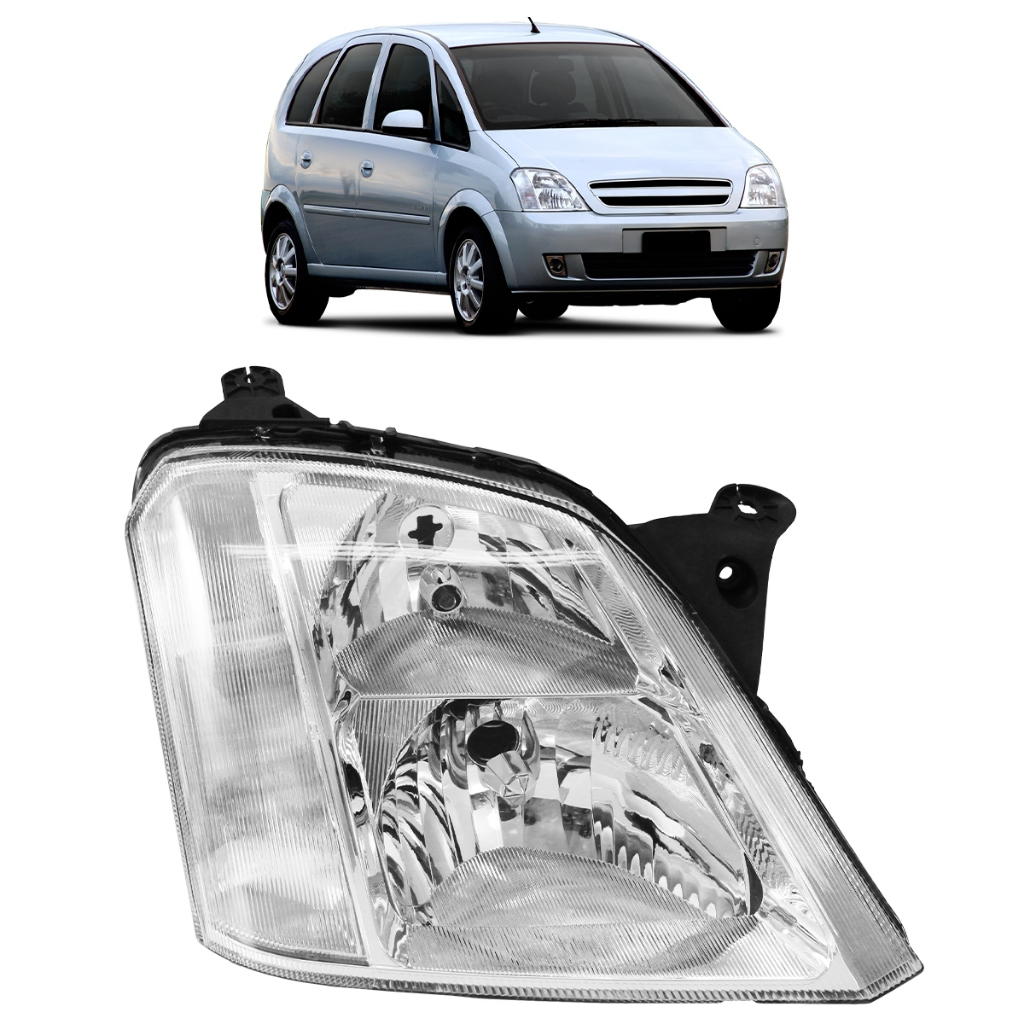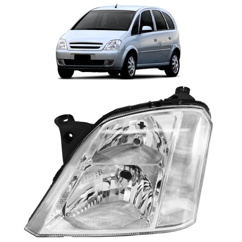 Farol Dianteiro Meriva 2001 2002 2003 2004 A 2012 Máscara Cromada Foco Duplo Lente Lisa Acrílico