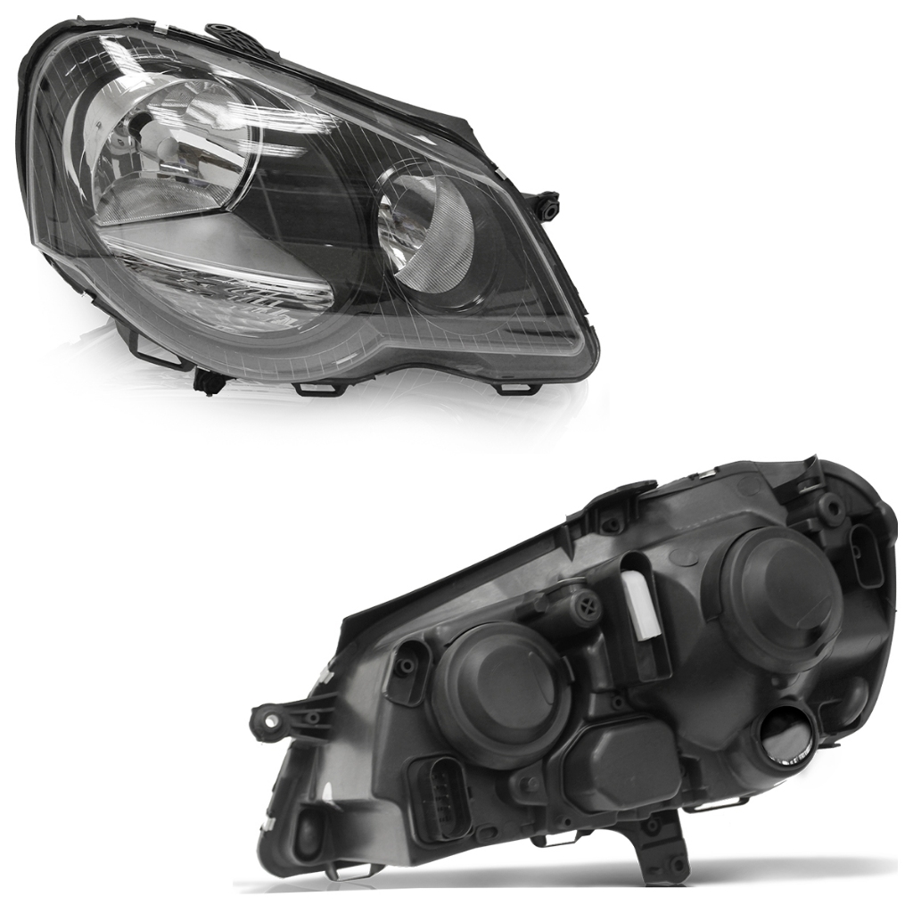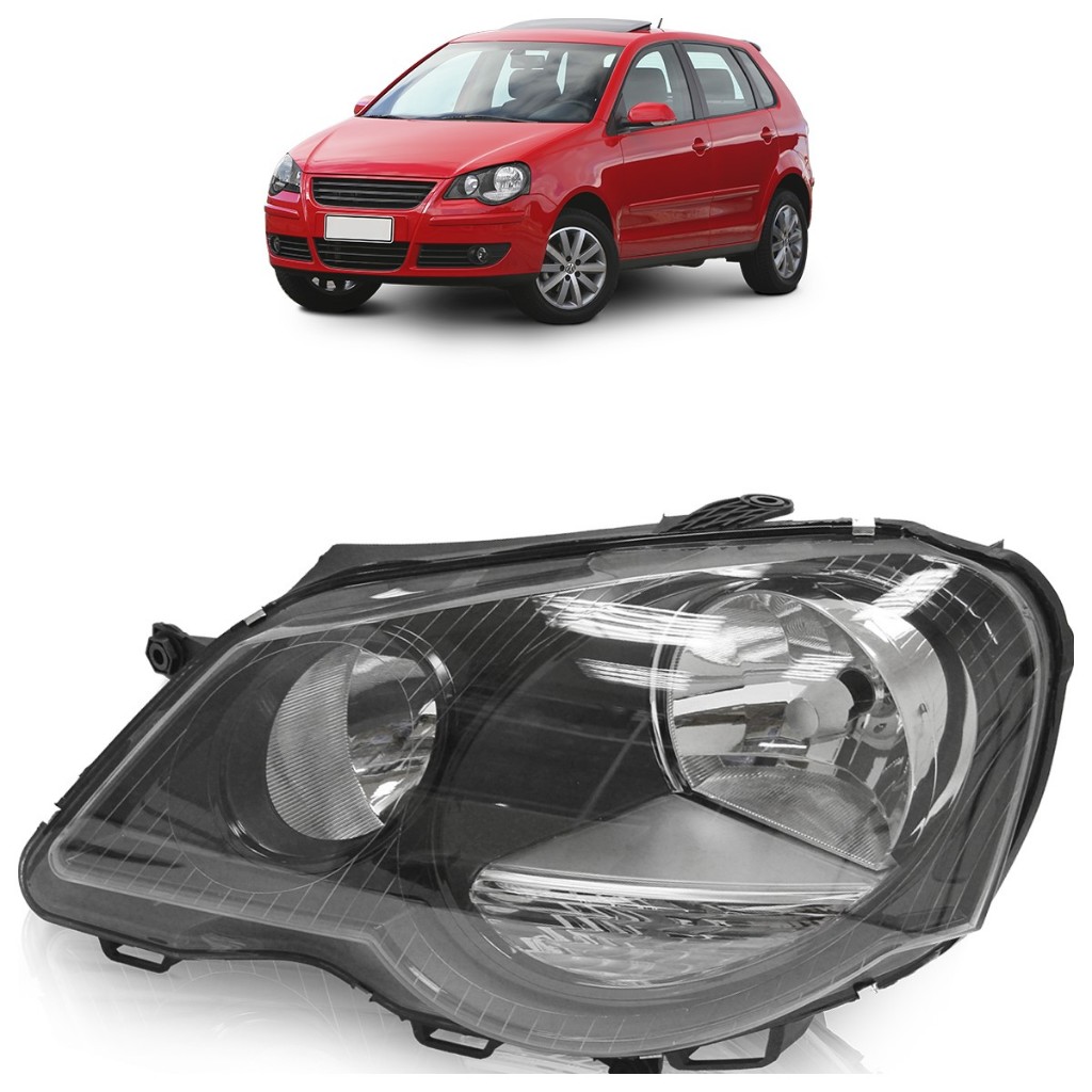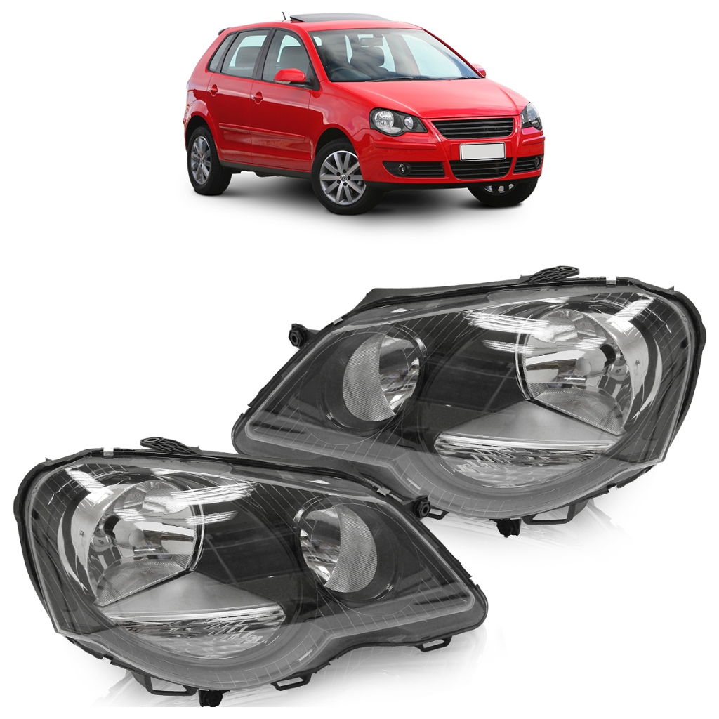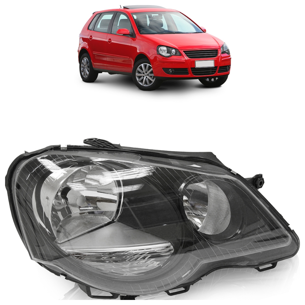 Farol Dianteiro Polo 2007 2008 2009 2010 2011 A 2014 Máscara Negra Foco Duplo Lente Lisa Acrílico