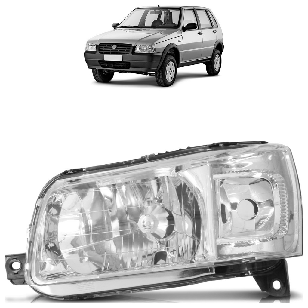 Farol Dianteiro Uno 2005 2006 2007 2008 2009 2010 2011 2012 2013 Máscara Cromada