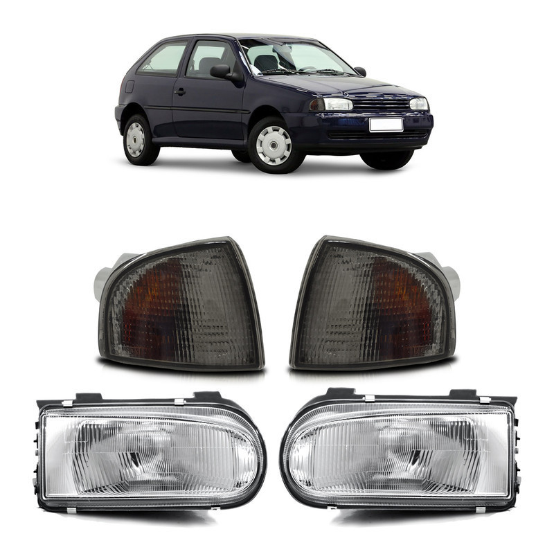 Par Farol Dianteiro Gol G2 Bola 1995 1996 A 1999 Máscara Cromada + Par Pisca Seta Dianteira Fumê