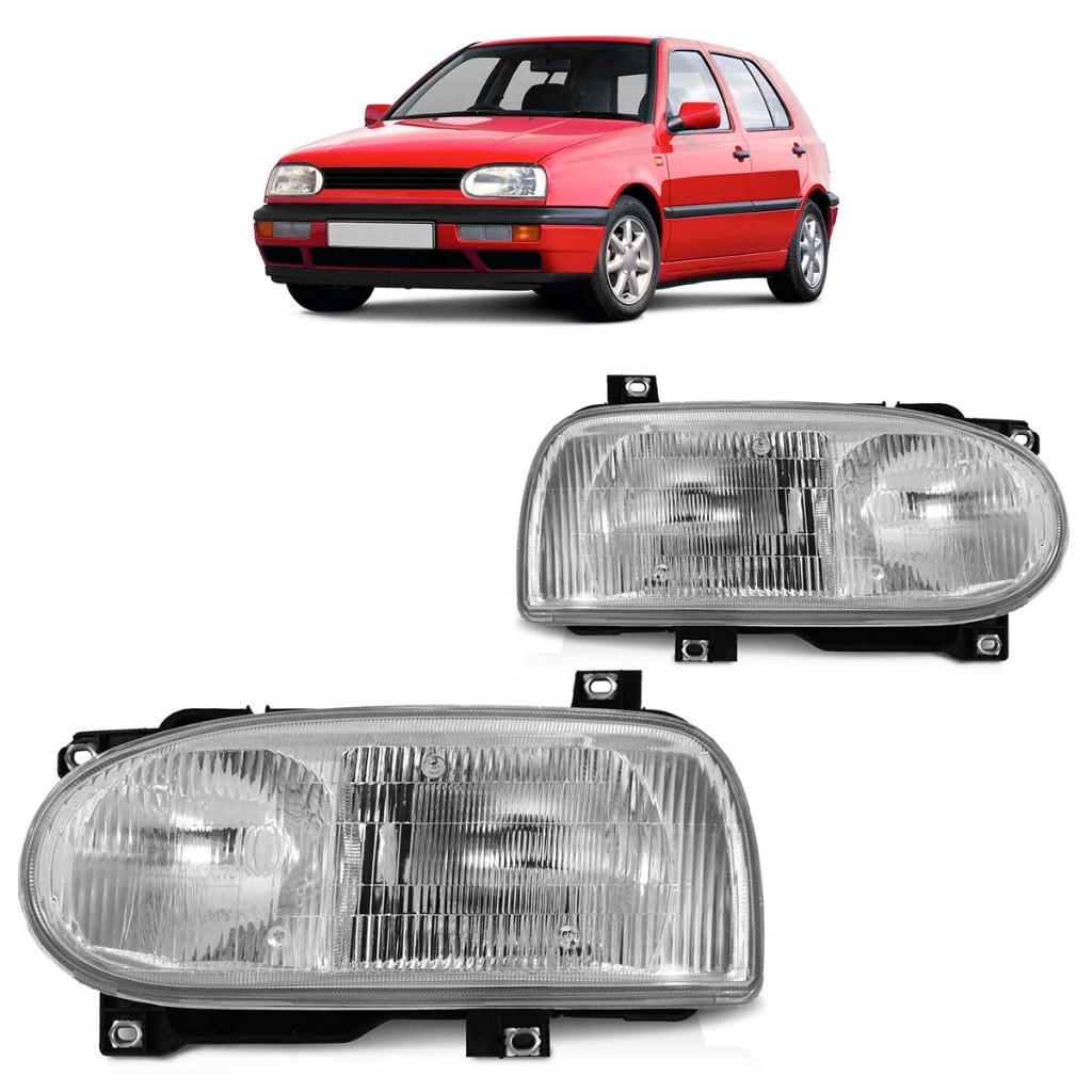 Farol Dianteiro Golf Mexicano GLX GTI 1995 A 1998 Máscara Cromada Foco Duplo Lente Estriada Vidro