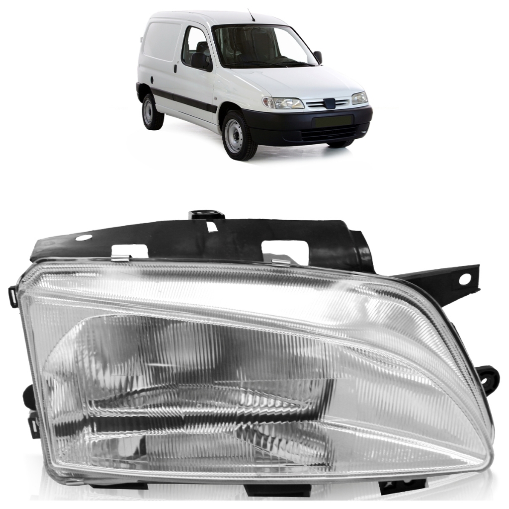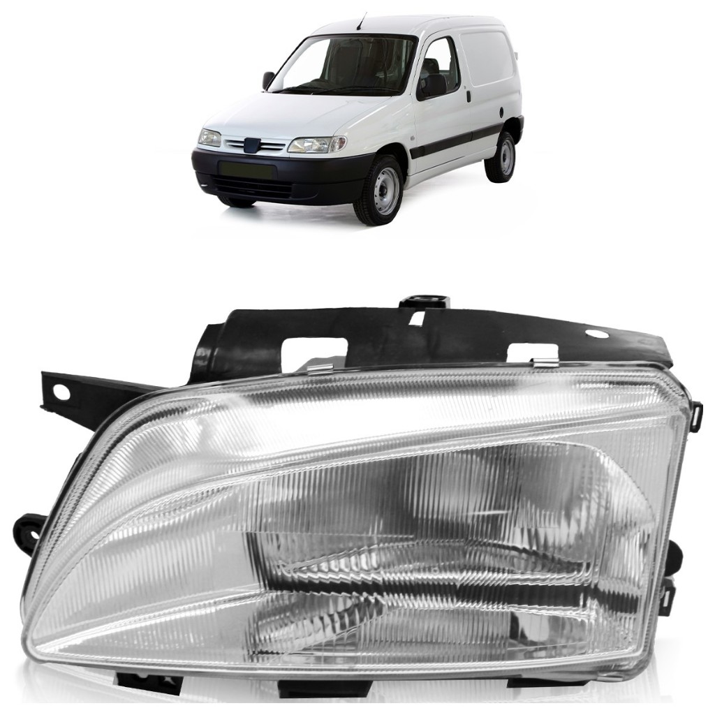 Farol Dianteiro Partner 1999 2000 A 2003 Foco Simples Máscara Cromada Carcaça Preta Lente Estriada