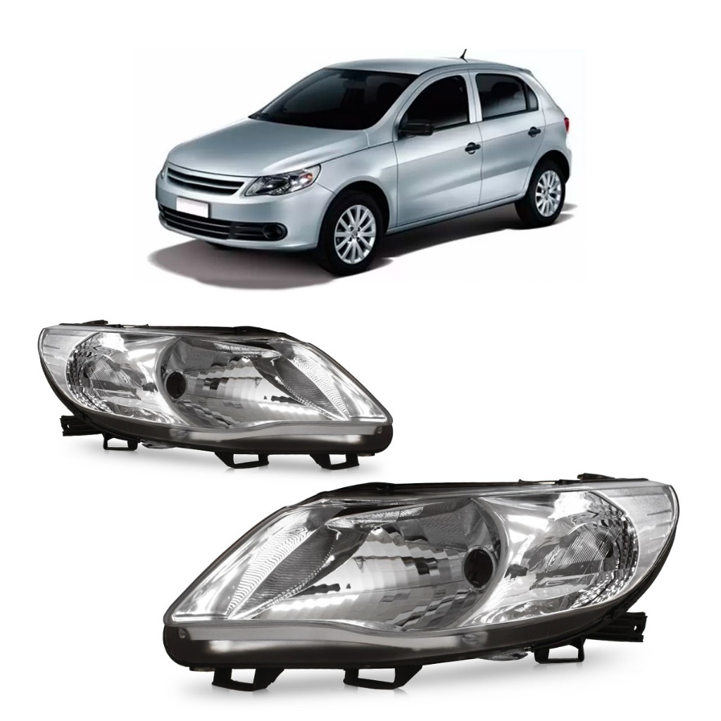 Farol Dianteiro Gol Saveiro G5 2009 2010 2011 2012 Foco Simples Máscara Cromada Lente Lisa Acrilico