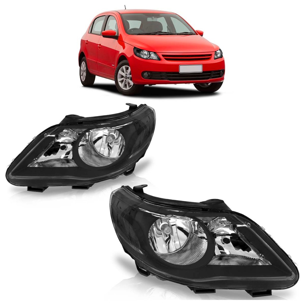 Farol Dianteiro Gol G5 2008 2009 2010 2011 2012 2013 Máscara Negra Foco Duplo Lente Lisa Acrilico