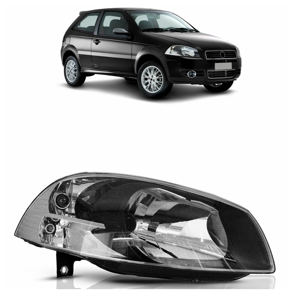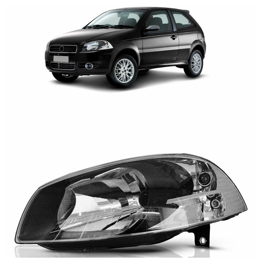 Farol Dianteiro Palio G4 2008 2009 Máscara Negra Lente Lisa Acrilica