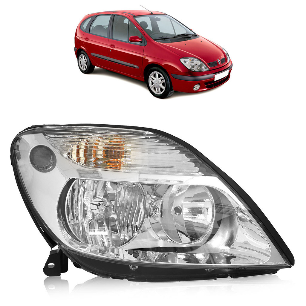Farol Dianteiro Scenic 01 02 03 04 05 06 07 08 11 Máscara Cromada Foco Duplo Lente Lisa Acrilico