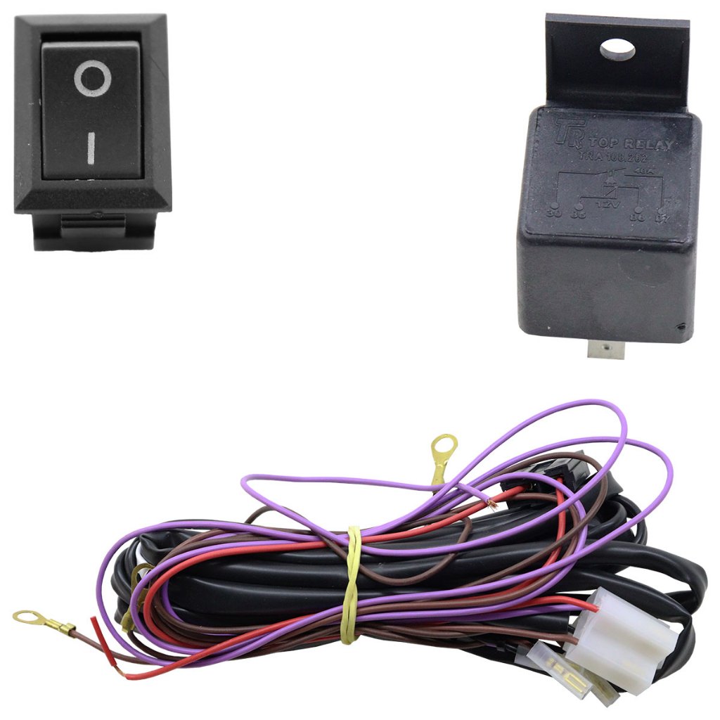 Kit Chicote Universal Farol de Milha Auxiliar com Relê Fusível e Botão 3 Peças