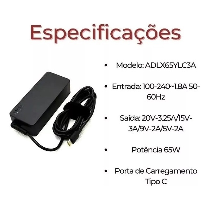 Fonte Carregador Compatível com Notebook 65w Type-c Usb-c para Celulares e Tablets