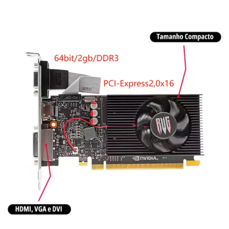 Placa De Vídeo Gt610 Ddr3 2gb Vga Hdmi Nvidia Pcie X16 2.0 64bits