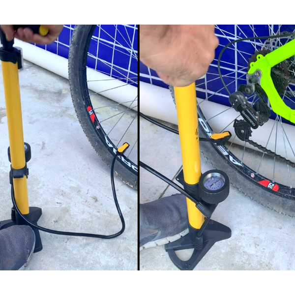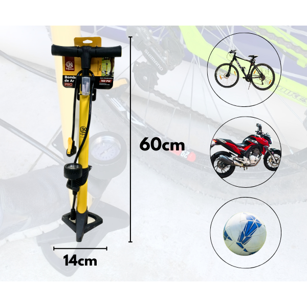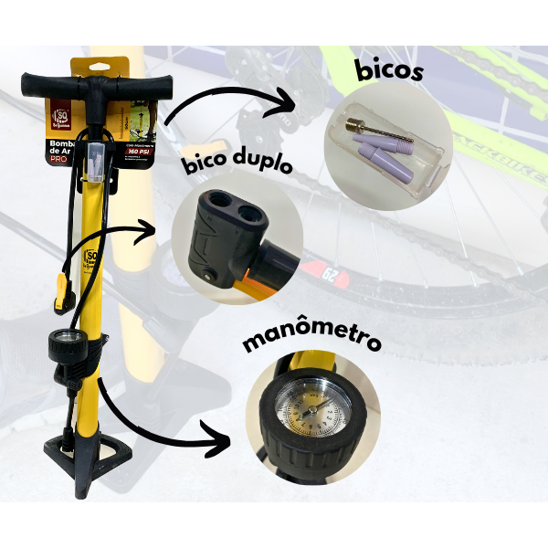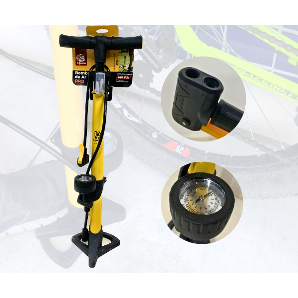 Bomba para bicicleta de ar Com Manômetro e Pedal SQ Para Encher Pneu moto carro