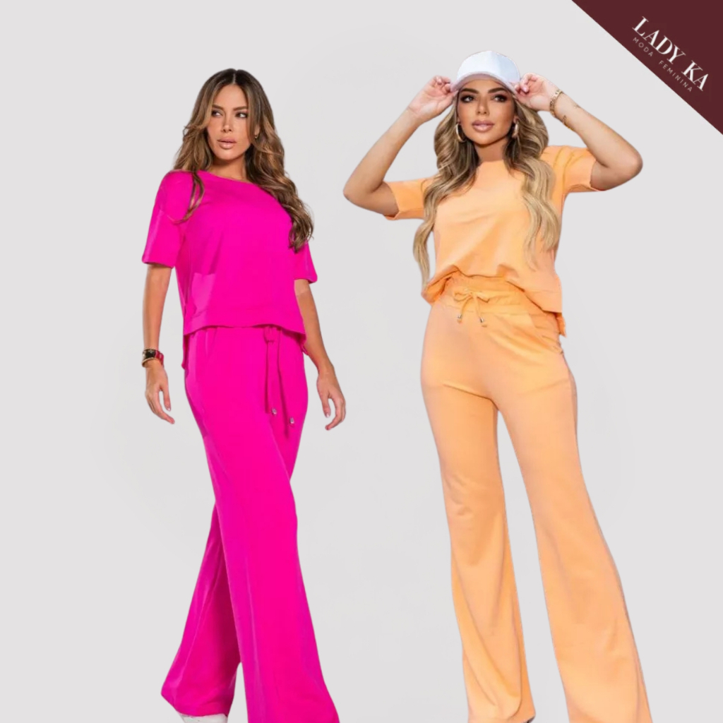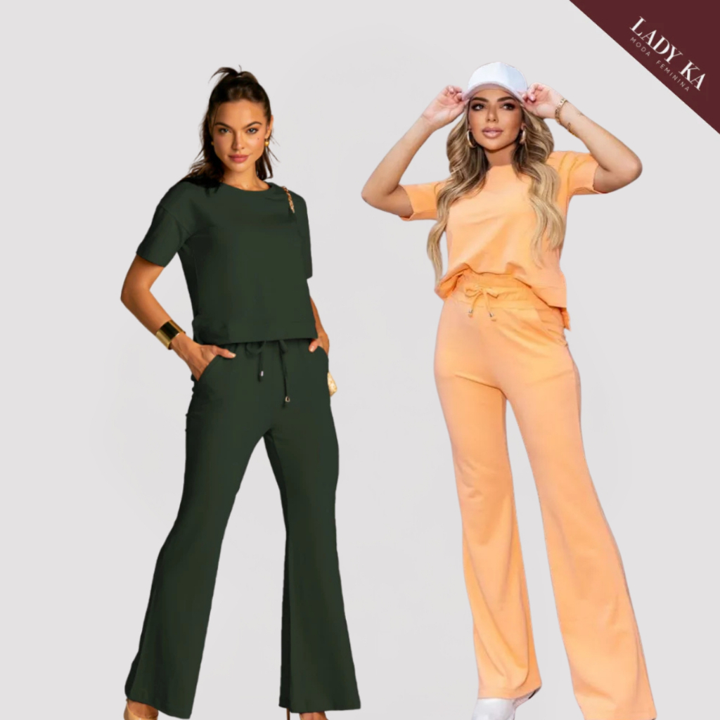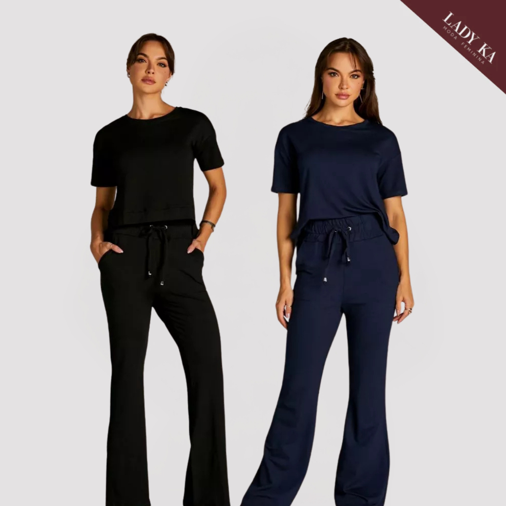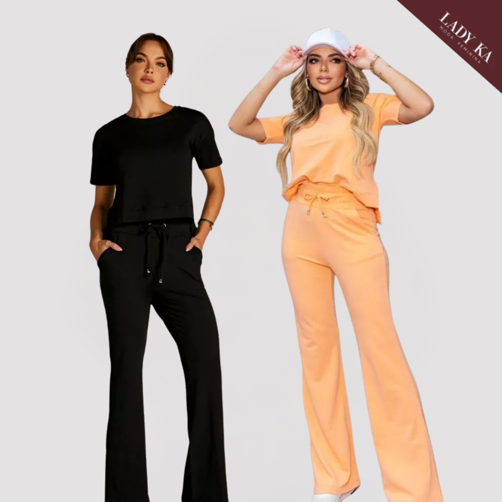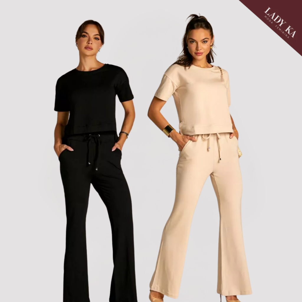 Kit 2 Conjunto de Moletinho Premium Calça Pantalona Blusa Mullet Manga Curta
