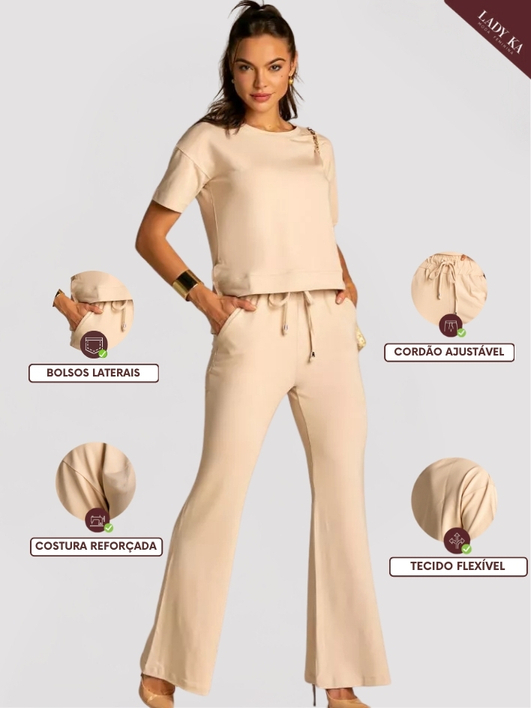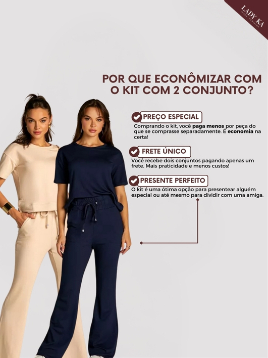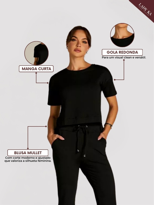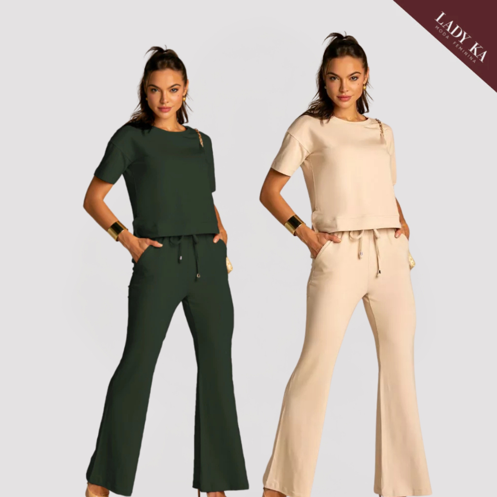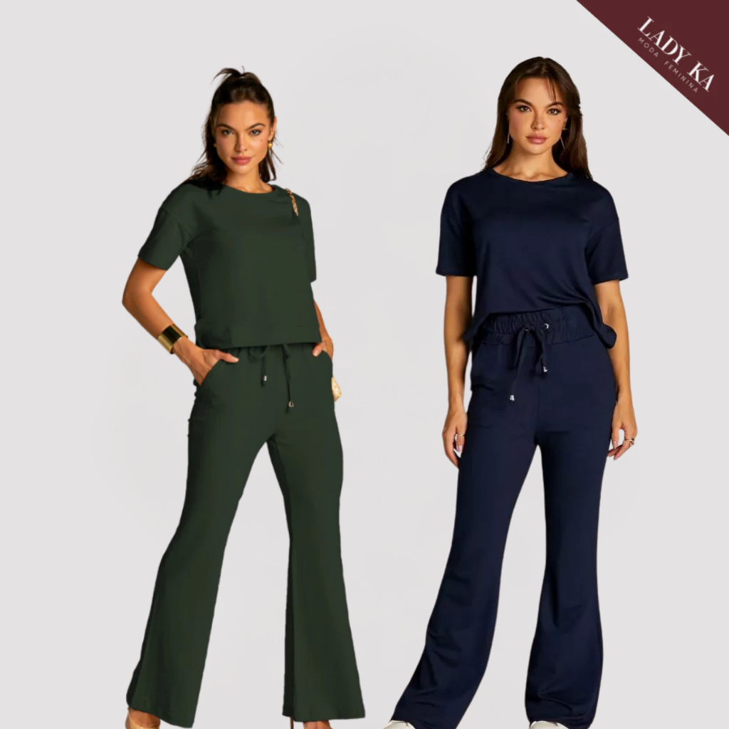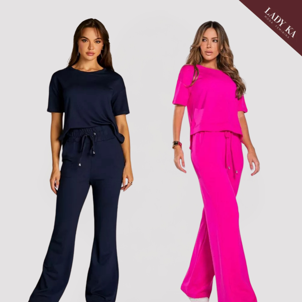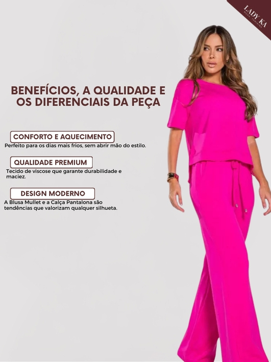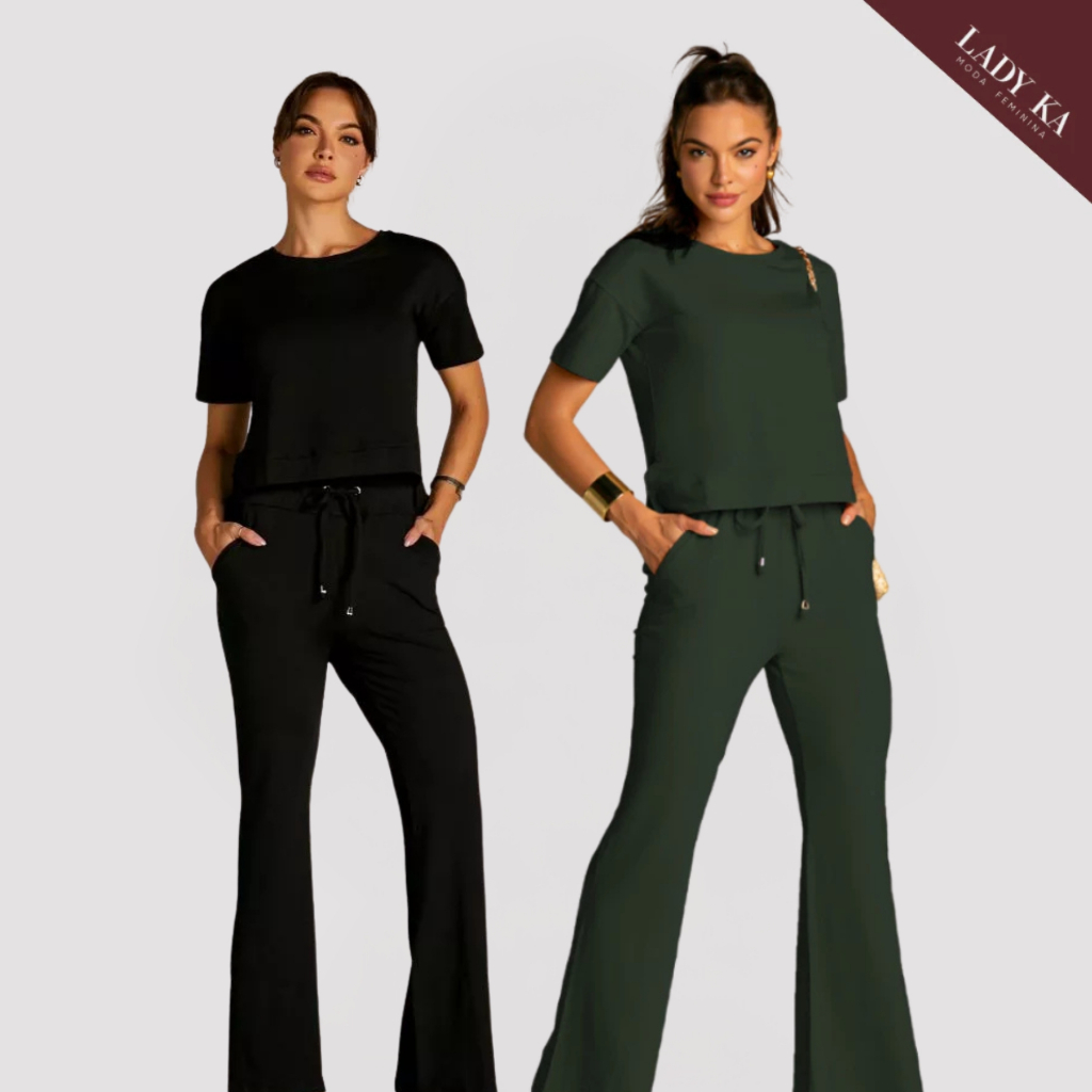 Kit 2 Conjunto de Moletinho Premium Calça Pantalona Blusa Mullet Manga Curta