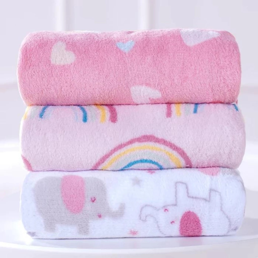 Mantinha para bebê 2 OU 3 UNIDADES Manta Microfibra Estampada Kit Maternidade 1 MT x 90 Cm