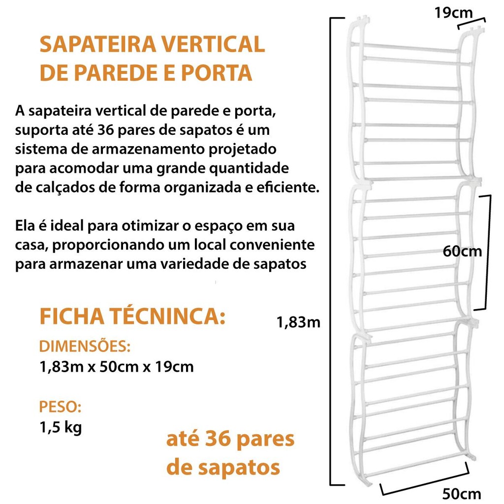 Sapateira Vertical de Parede e Porta Para 36 pares Sapato Tênis Sandálias