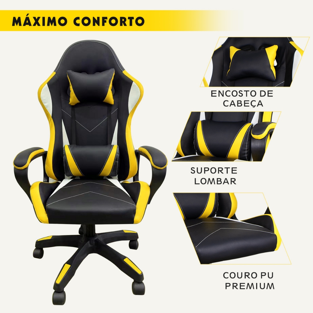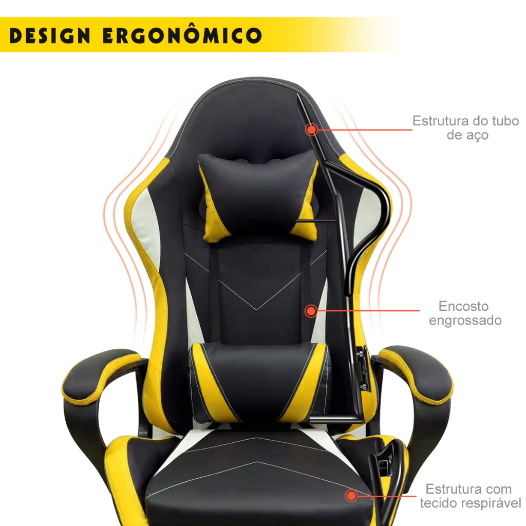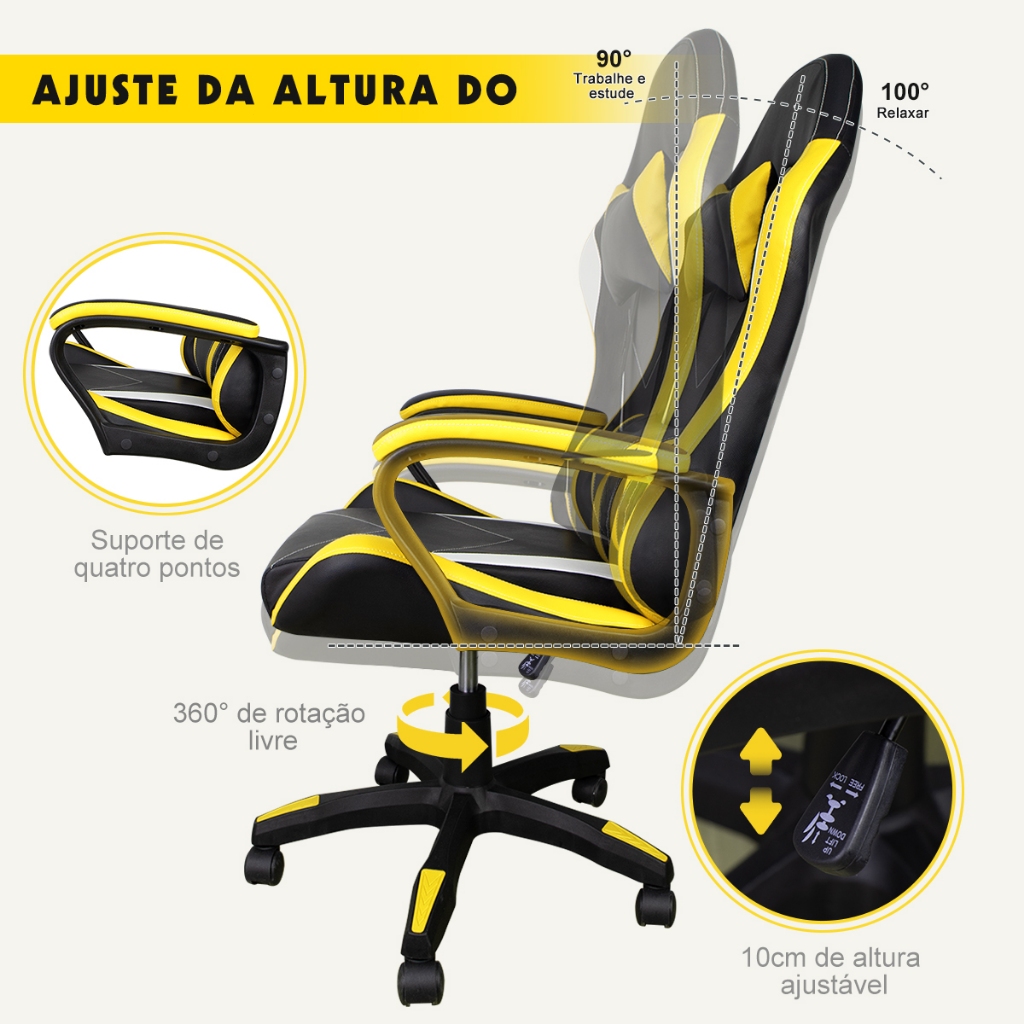 Cadeira Gamer Profissional Ajustável Amarelo Cadeira De Gamer Giratória