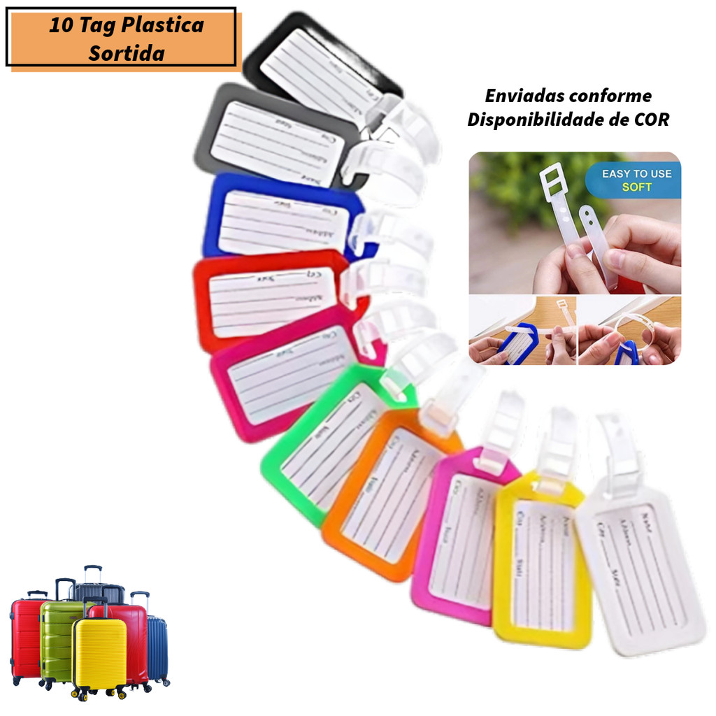 10 Unidades Tag de Identificação Etiquetas p/ Mala Bagagem Viagem