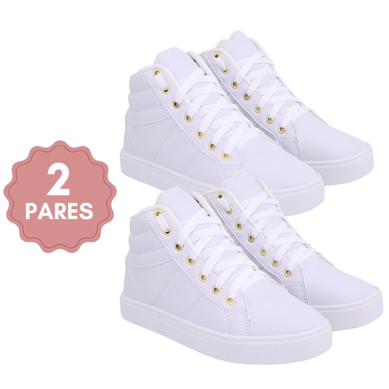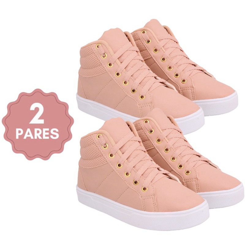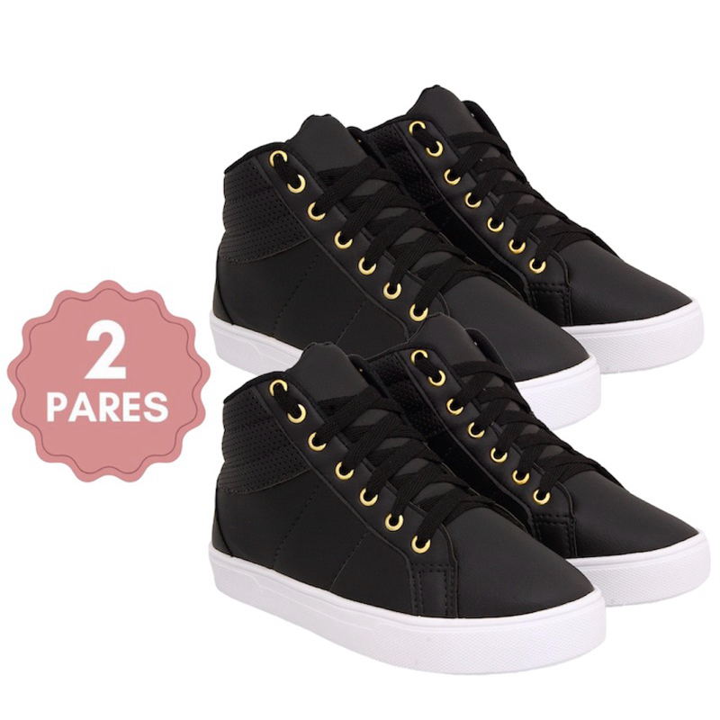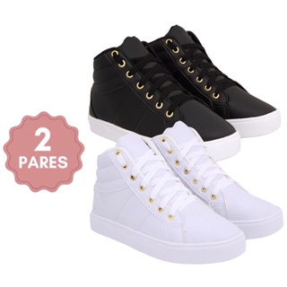 Kit 2 botinha feminina bota tênis cano alto escola moda