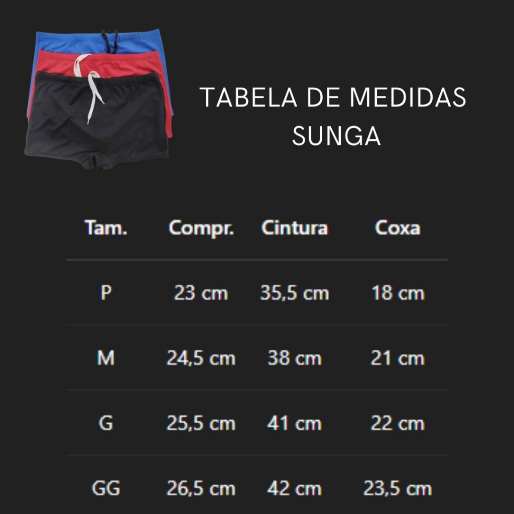 SUNGA com cordão para ajuste proteção UV50 estilo boxe sem estampas