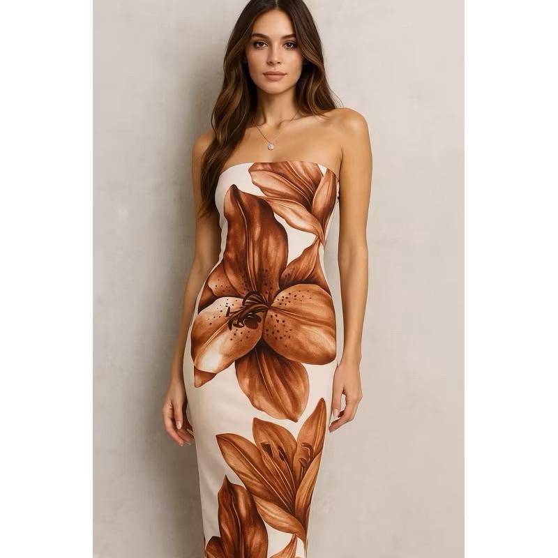 Vestido Flor Feminino Longo Estampado Suplex Premium Tomara Que Caia Moda Estiloso