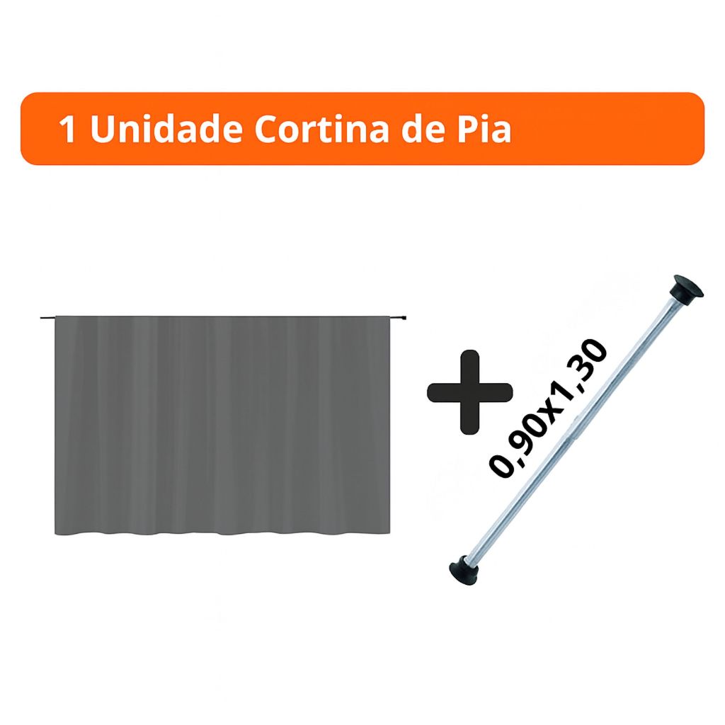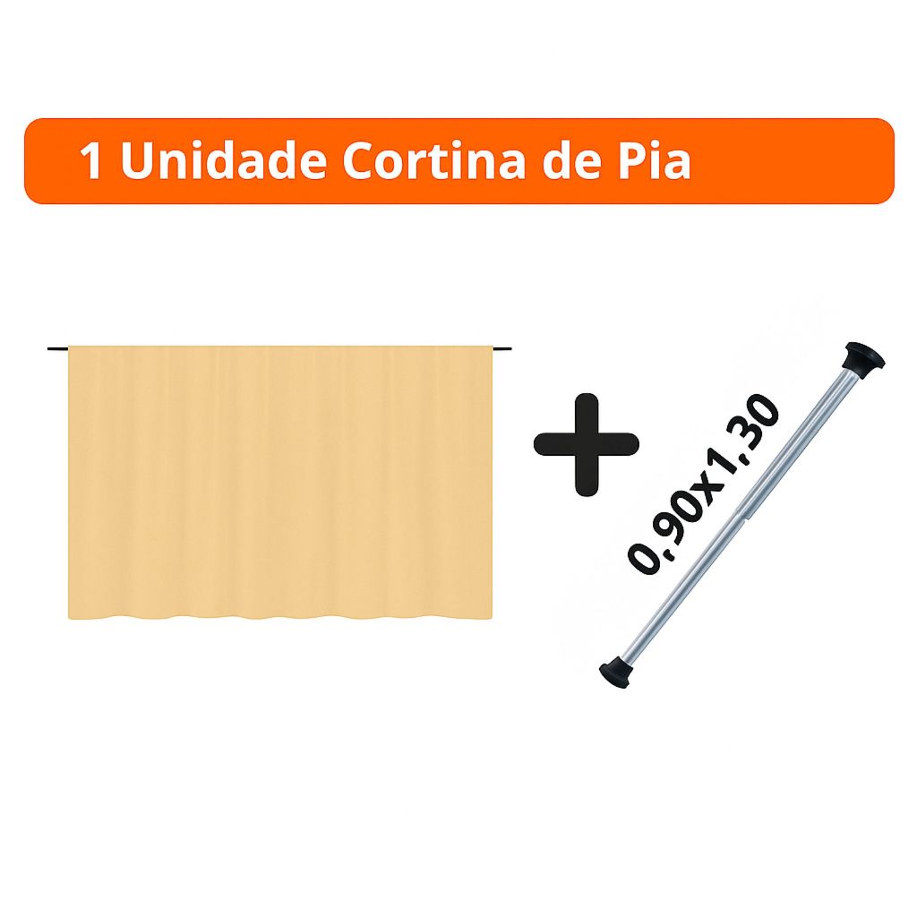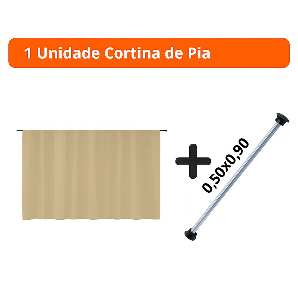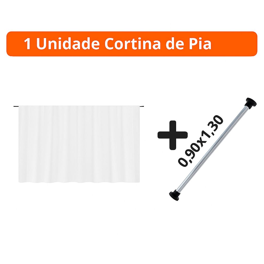 Kit Cortina de Pia PVC + Varão Extensível Ajustável 50cm a 130cm Cozinha